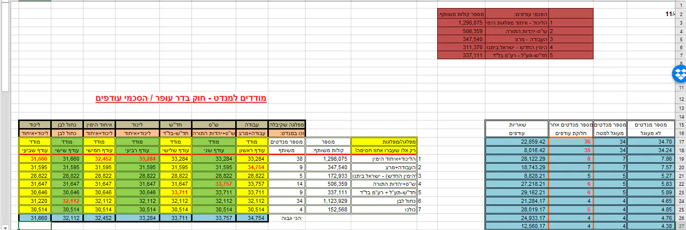 הערה: חלק מהמנדטים שאבדו בין תשע"ג לתשע"האריאל יוסף