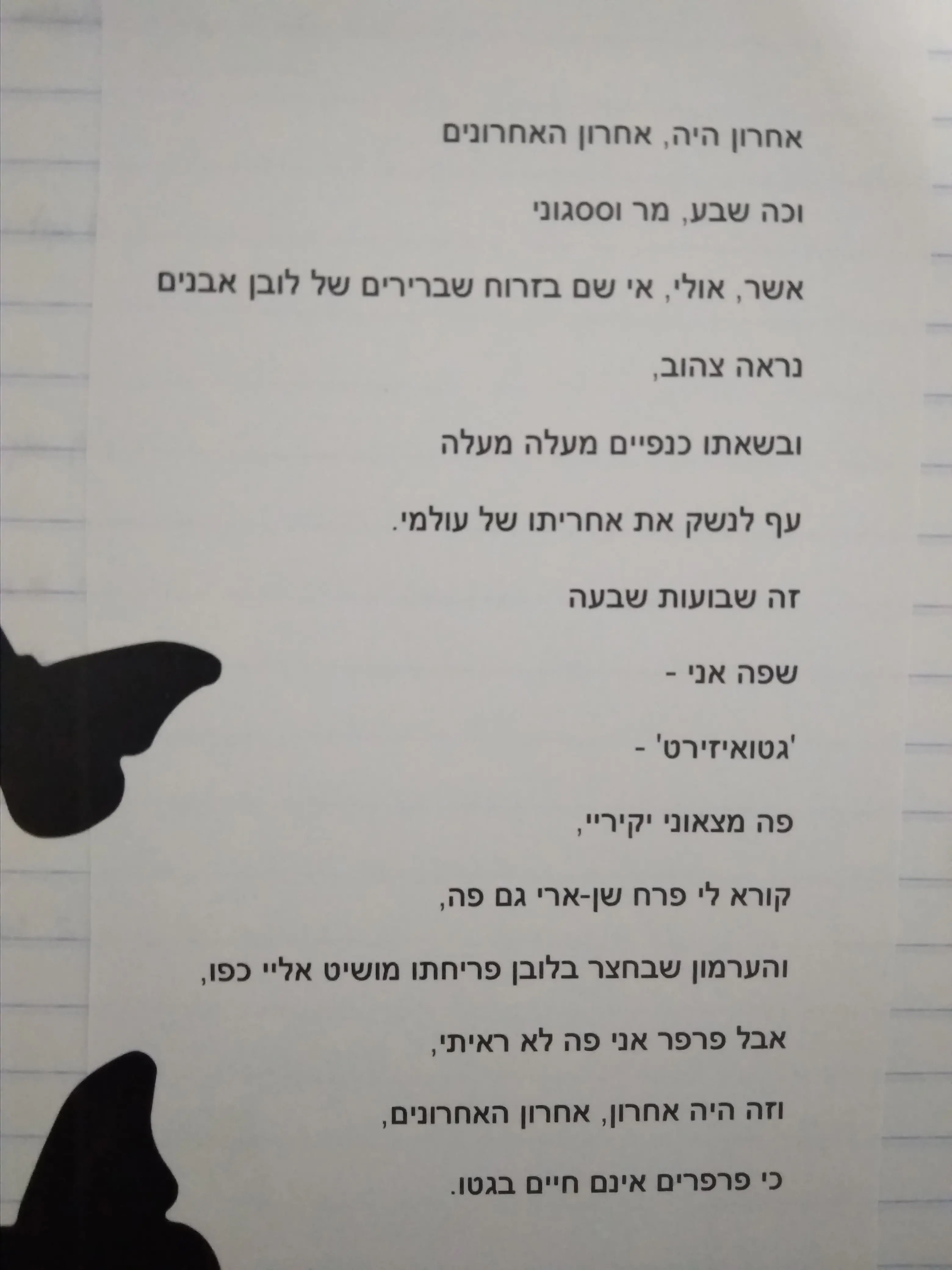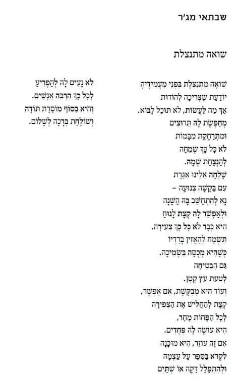 גם כעת, במרחק שנים ארוכות מהתקופה החשוכה בתולדות העמים, וכשאני פוסע על אדמת מבטחים במדינת ישראל, אוחזת בגופי צמרמורת בכל עת בה אני חוזה בתמונה המחרידה שכל־כך מזוהה עם הימים האפלים של השואה - שער הכניסה למחנה ההשמדה באושוויץ.