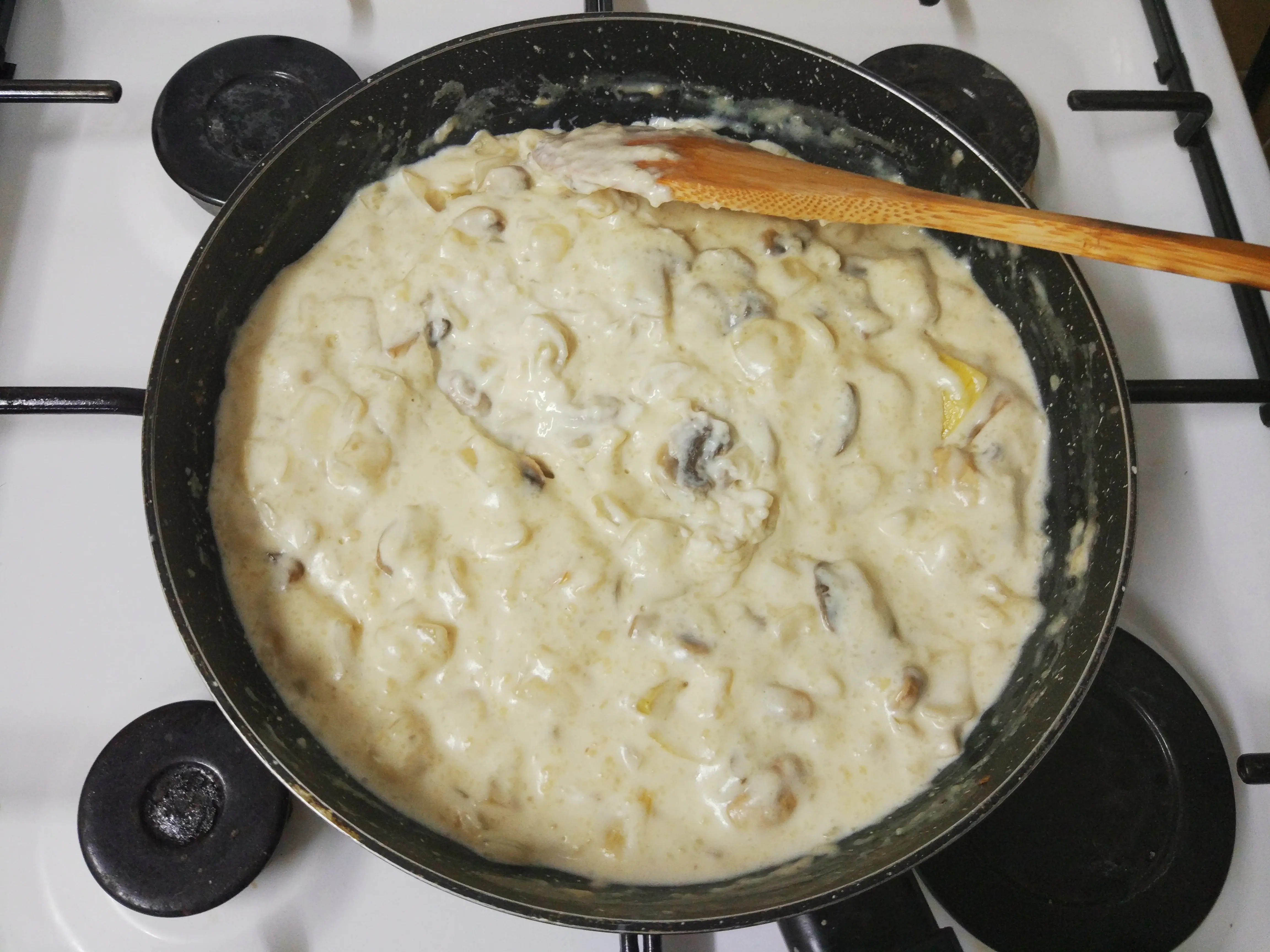 שמתי שמנת חמוצה. טיגנתי בצל לפי המתכון...שמן פשתן