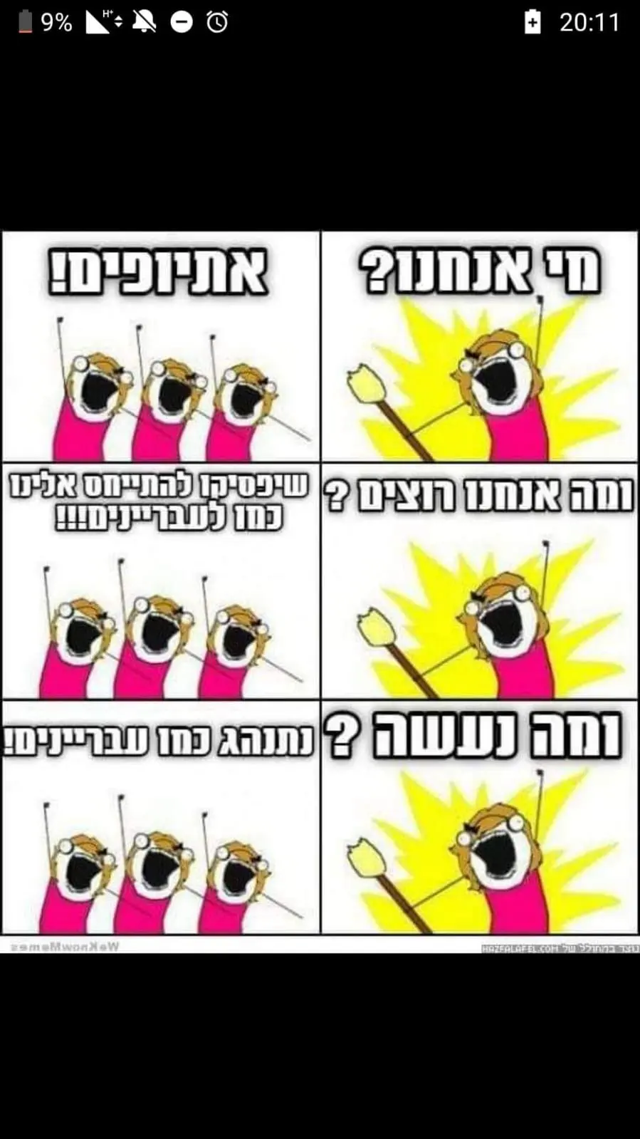 כאילו, אנחנו סובלים אז כל העולם נסבול?! מה הרעיון של ההפגנות המטופשות האלה כל שני וחמישי?? (לא רק של האתיופים)