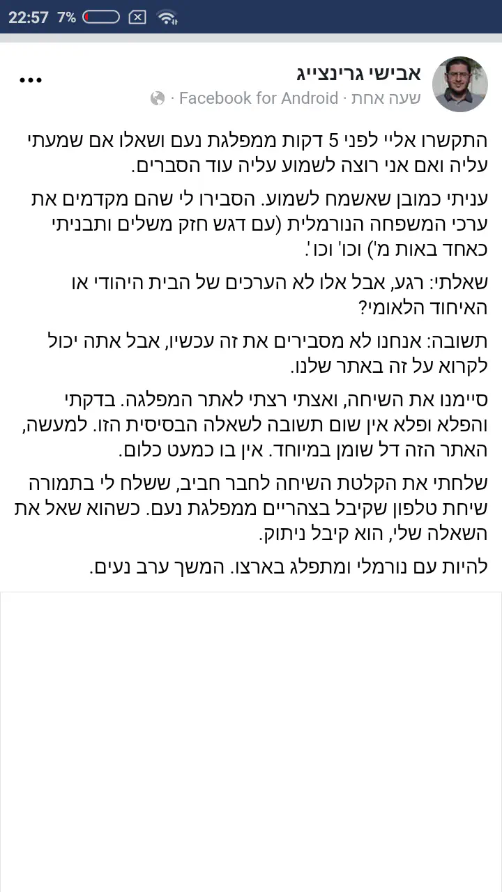 נראלי שהרוב איתם בדעותמבשר שלום