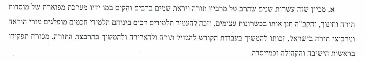 1.בית הדין פסק שהרב טל יכול להמשיך להנהיג את הישיבה ואת המוסדות.