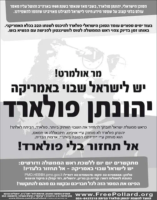 | הקמפיין של ''תופשי פולארד'' נועד למנוע את שחרורו בקרוב | ||||