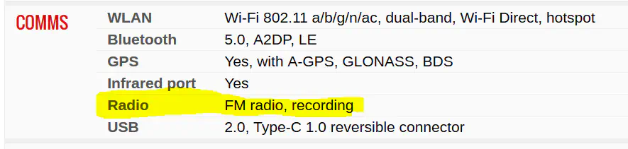 אפשר לבדוק כל מכשיר באתר gsmarena.com לראות אם יש רדיו, תחת הקטגוריה Comms
