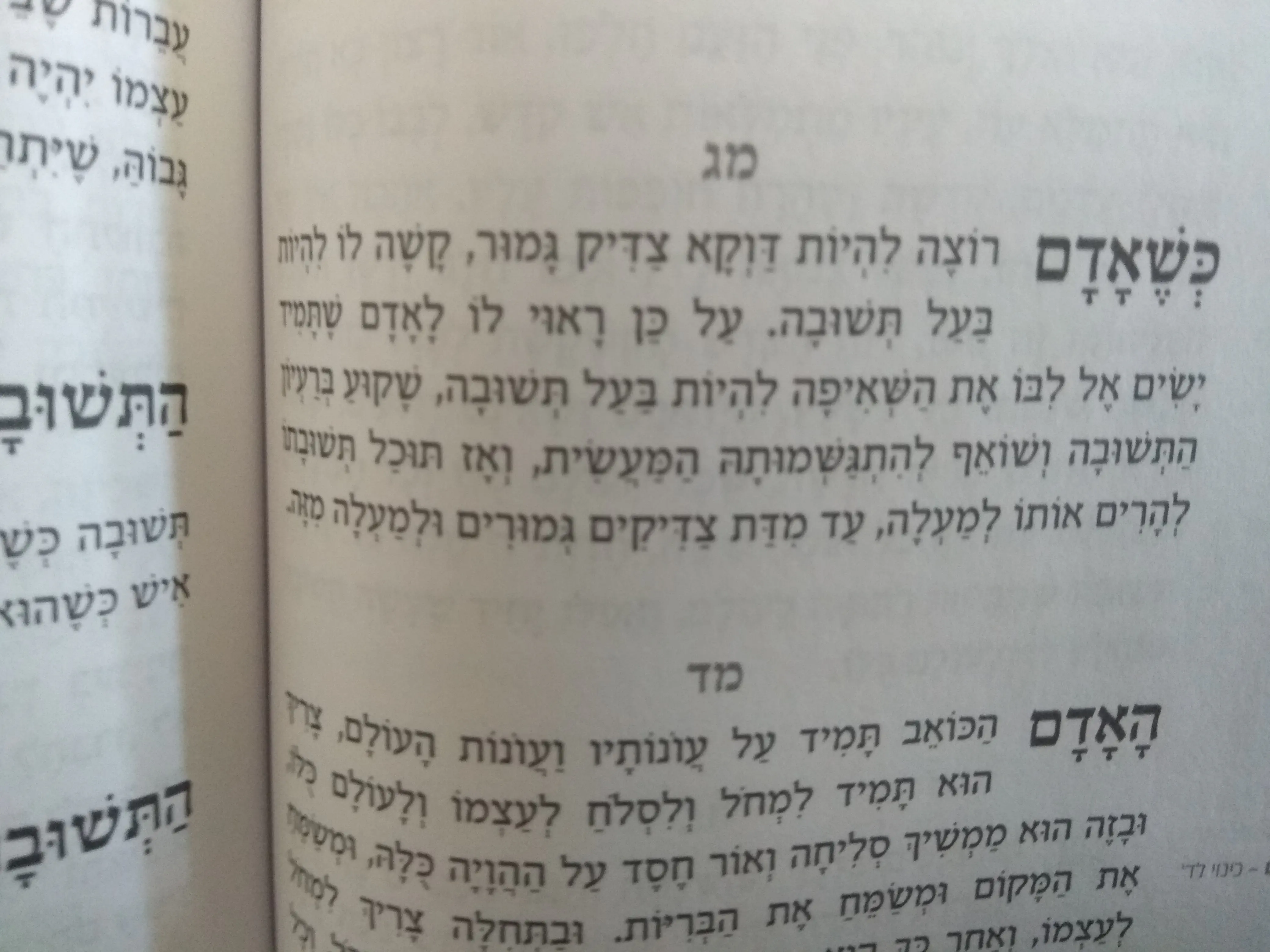 כְּשֶׁנּוֹפֵל אָדָם מִמַּדְרֵגָתוֹ יֵדַע שֶׁמִּן הַשָּׁמַיִם הוּא, כִּי הִתְרַחֲקוּת תְּחִלַּת הִתְקָרְבוּת. עַל כֵּן נָפַל שֶׁיִּתְעוֹרֵר יוֹתֵר..., וַעֲצָתוֹ שֶׁיַּתְחִיל מֵחָדָשׁ... כְּאִלּוּ לא הִתְחִיל עֲדַיִן כְּלָל מֵעוֹלָם. וְזֶה כְּלָל גָּדוֹל... שֶׁצְּרִיכִין מַמָּשׁ בְּכָל יוֹם לְהַתְחִיל מֵחָדָשׁ... כַּמָּה צָרִיךְ הָאָדָם לְהִתְחַזֵּק... וְלִבְלִי לִפּל מִשּׁוּם דָּבָר שֶׁבָּעוֹלָם, רַק לְהַתְחִיל בְּכָל פַּעַם מֵחָדָשׁ.
