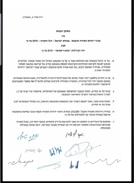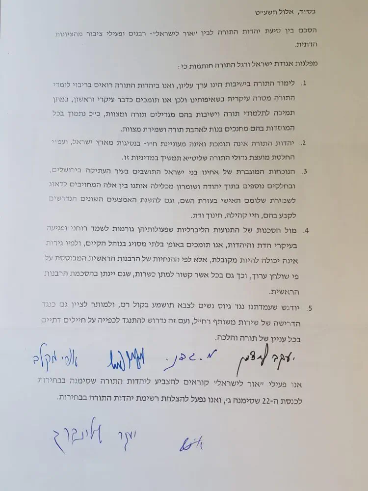 יהדות התורה לא התחייבה בהסכם הזה לשום דבר.אריאל יוסף
