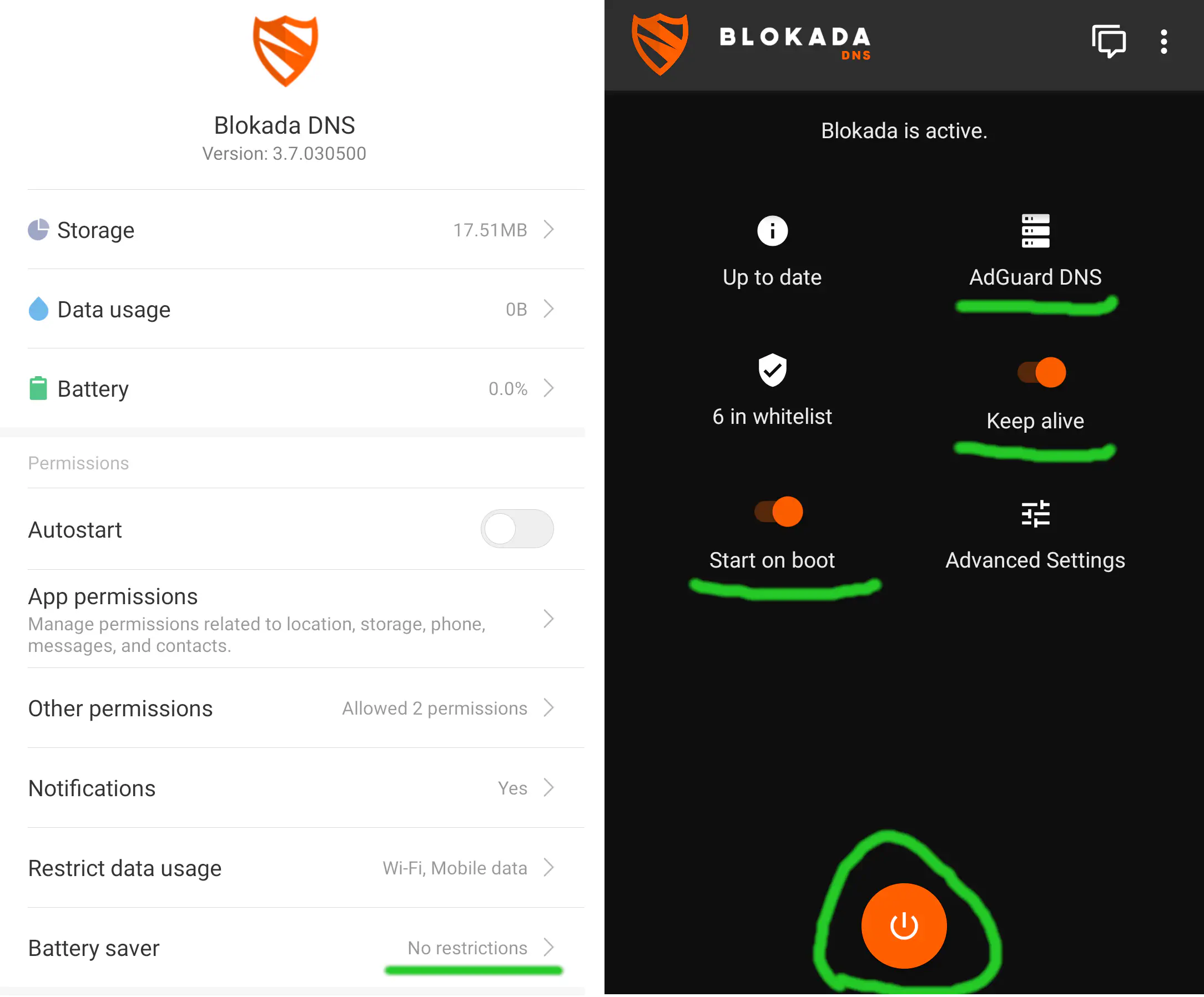 2. בהגדרות של היישום בוחרים ב-AdGuard DNS ואז לוחצים על כל הכפתורים המסומנים בירוק (מצ"ב צילום מסך)