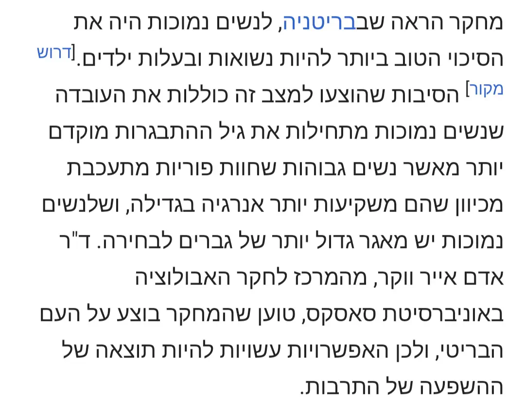 ולא בכיוון של 'שבנות תפסיקנה לחפש בחורים גבוהים', כי זה לא פרקטי ולא יקדם את התהליך, נכון? אם אנחנו רוצים להתקדם בתכלס צריך משהו פרקטי וישים.
