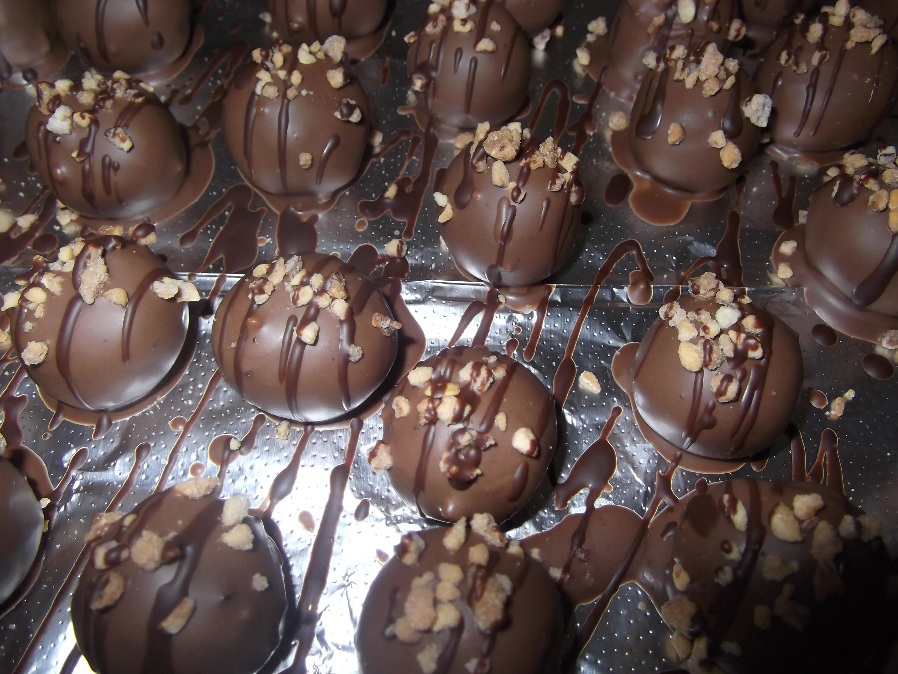 יוצא קצת שלוליות של שוקולד על המגש שמתייבשות בהקפאה ואז פשוט חותכים אותן והכדורים מושלמים!