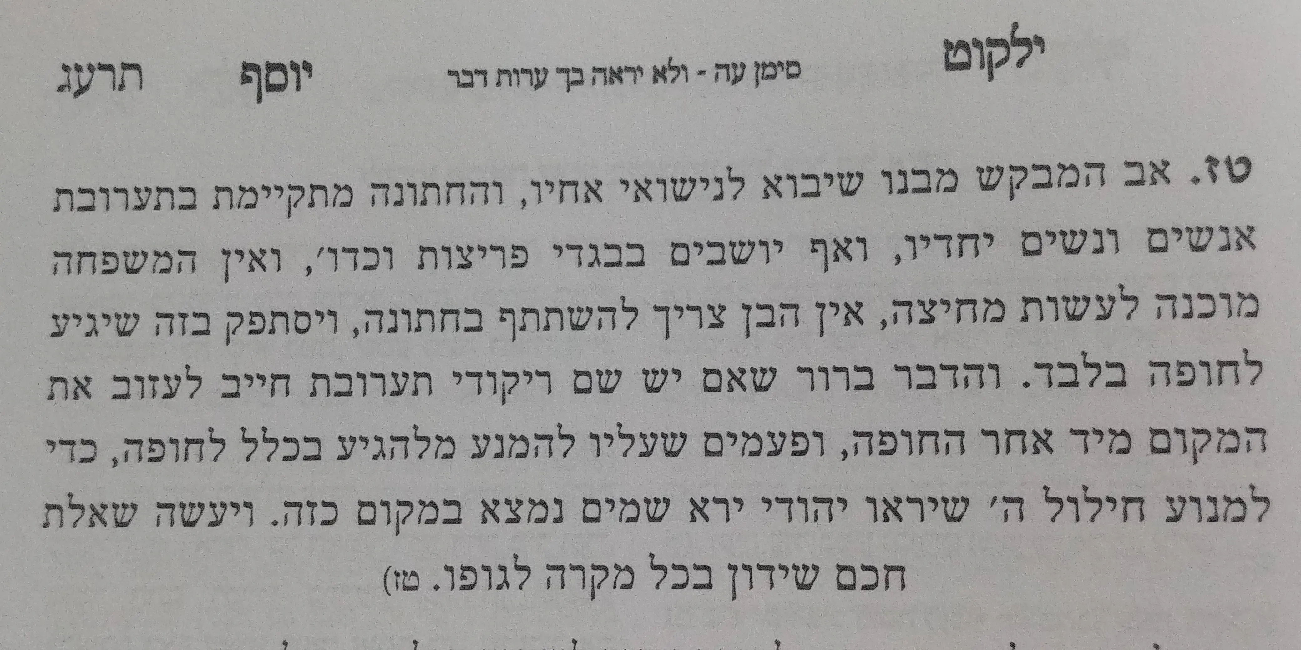 שאני בא עם משפחתי הפרדה כזו לא נעימה בכלל ואני כיפה סרוגה...