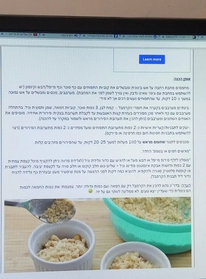 מורידים את התפוחים מהאש ומחלקים אותם לתבניות קטנות ומתוקות ומעל כל שכבת תפוחים שמים פרורים