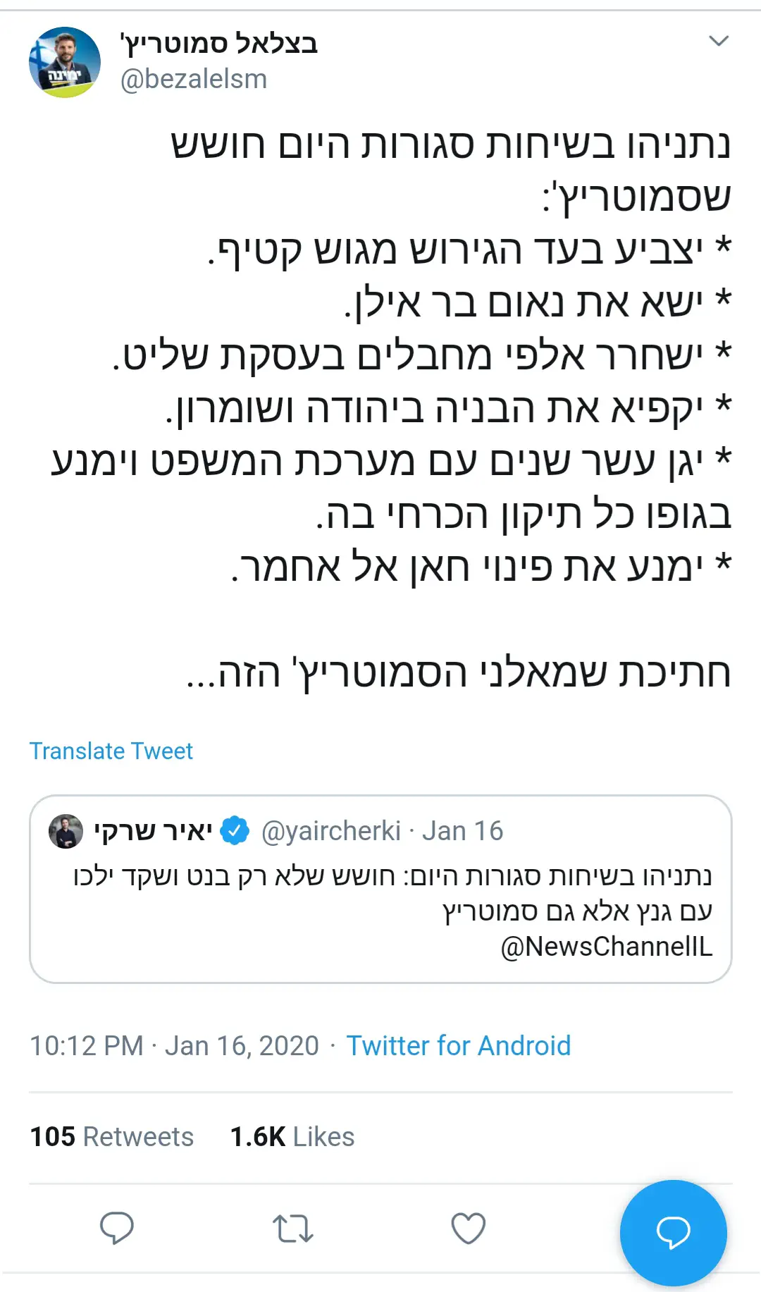 המשפטן הדגול סמוטריץ' שאתה מגדולי מעריציואיתן גיל