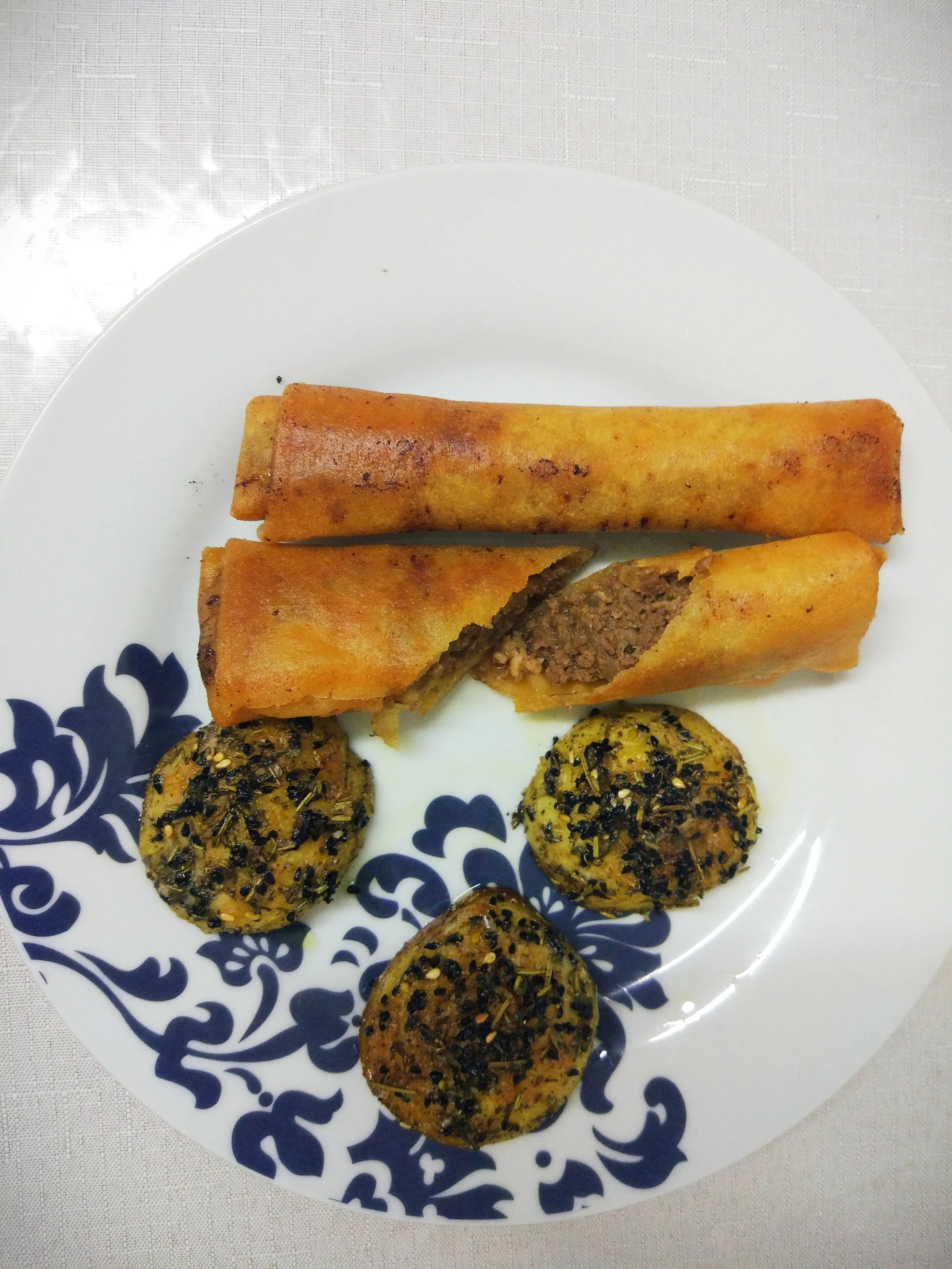 טיגנתי בצל (חתכתי אותו לפרוסות הכי דקות שאפשר ואז לרבעים ככה שנוצרו רצועות דקות שבקושי מורגשות בבשר), אחר כך הוספתי מעט רוטב סויה, רוטב טרייאקי, שמיר וכוסברה קצוצים, כמון, פפריקה חריפה, קינמון, סילאן, מלח ובשר. אם היו לי הייתי מוסיף גם צנוברים, זה מוסיף המון.