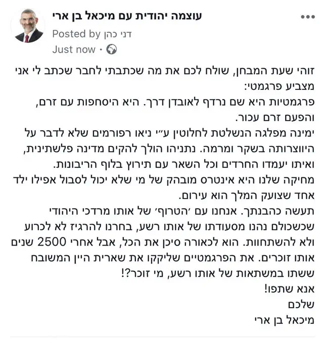 גם ההבהרה לפני שנה, שבית המקדש לא יבנה במחטף קואליציוני, זו התבגרות משנים שדיבר על להכריח את העם והרבנים.