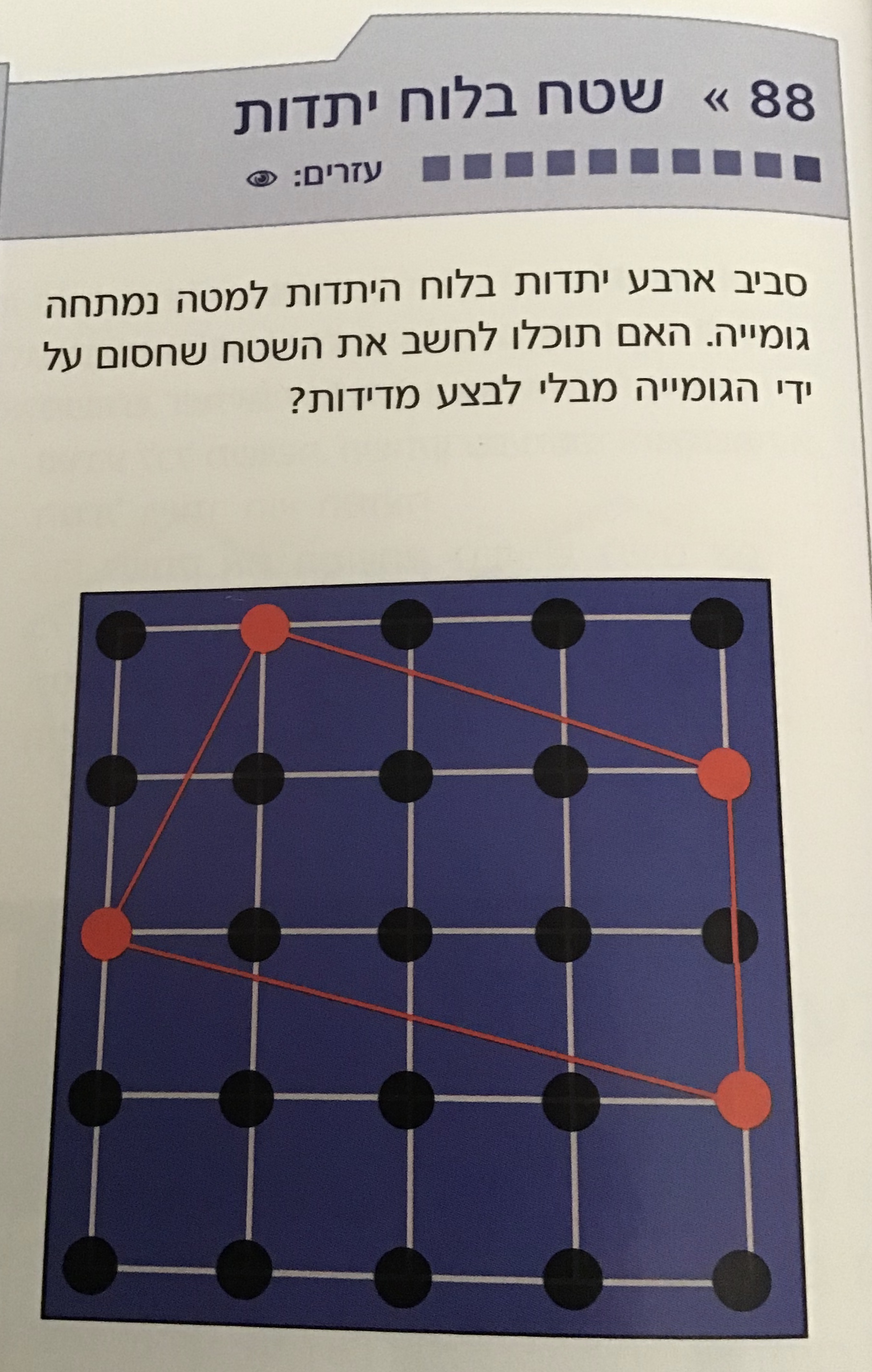 יוצא שסכום השטחים שווה, חוץ מהריבןע הקטן מצד שמאל למטה.