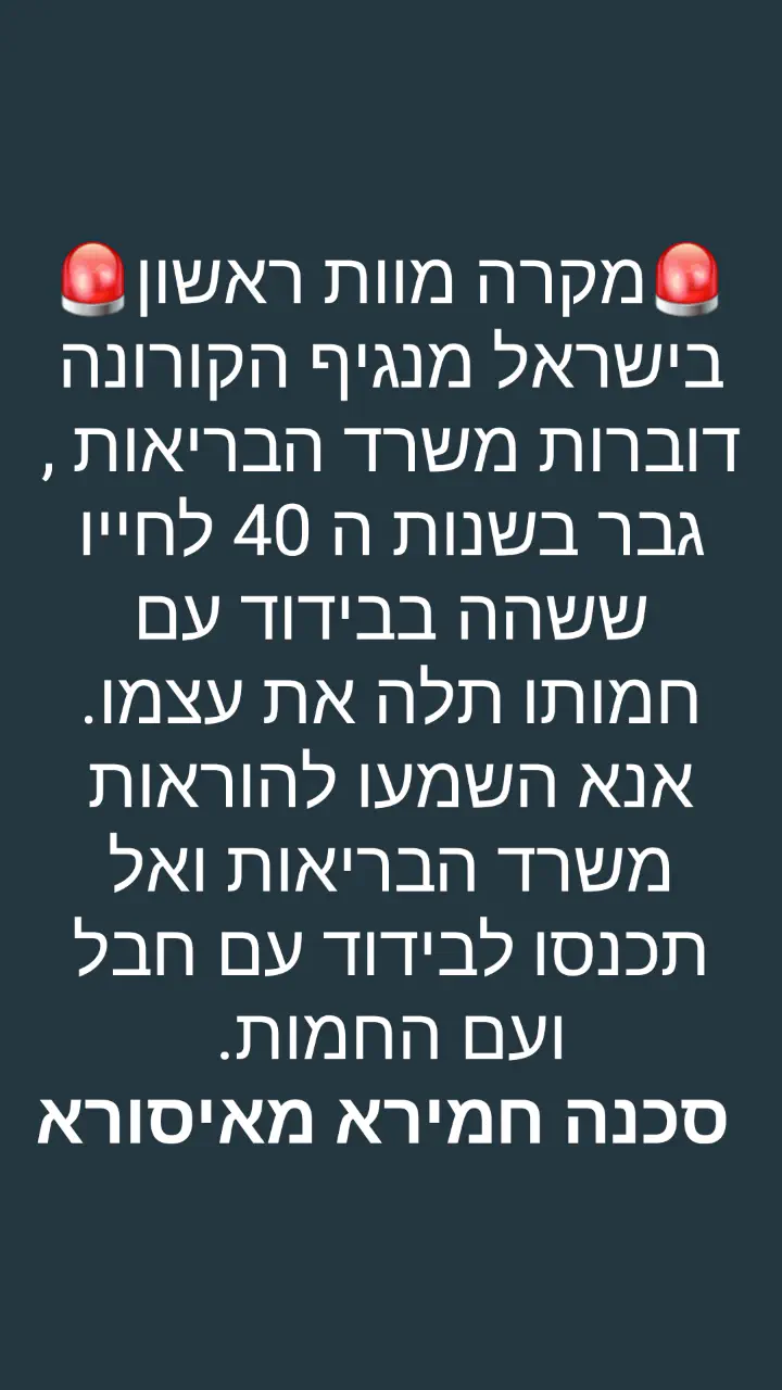 כל מי שחותם ומצהיר שיהיה בבידוד בבית עד סיום המגיפה..יקבל מהממשלה כסף בסכום של 7000 שח לחודש