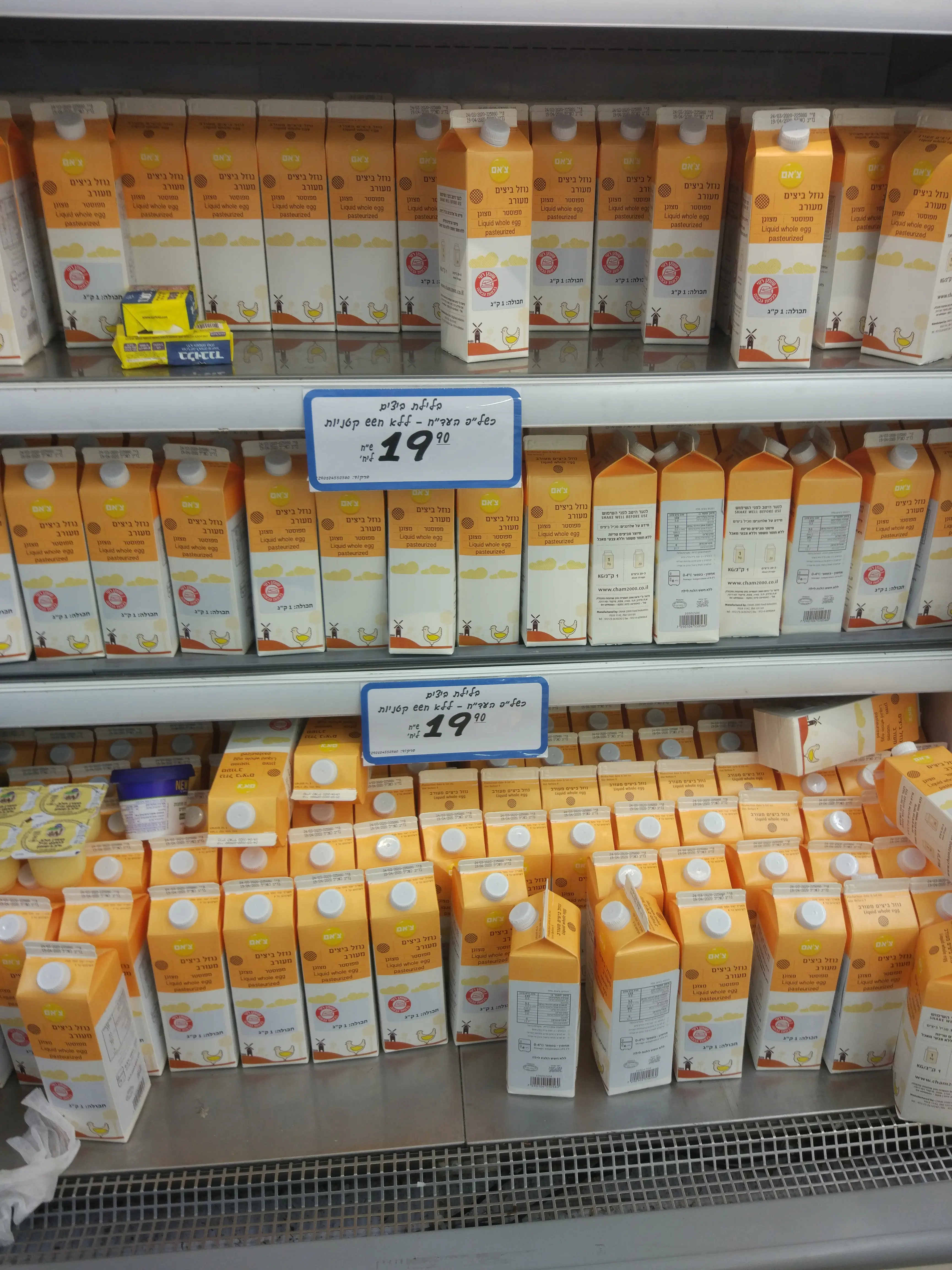 החלב היה באבקה, כמו מלבין לקפה, ובתור ביצים גם כן מכרו לה משהו כזה בקופסה.