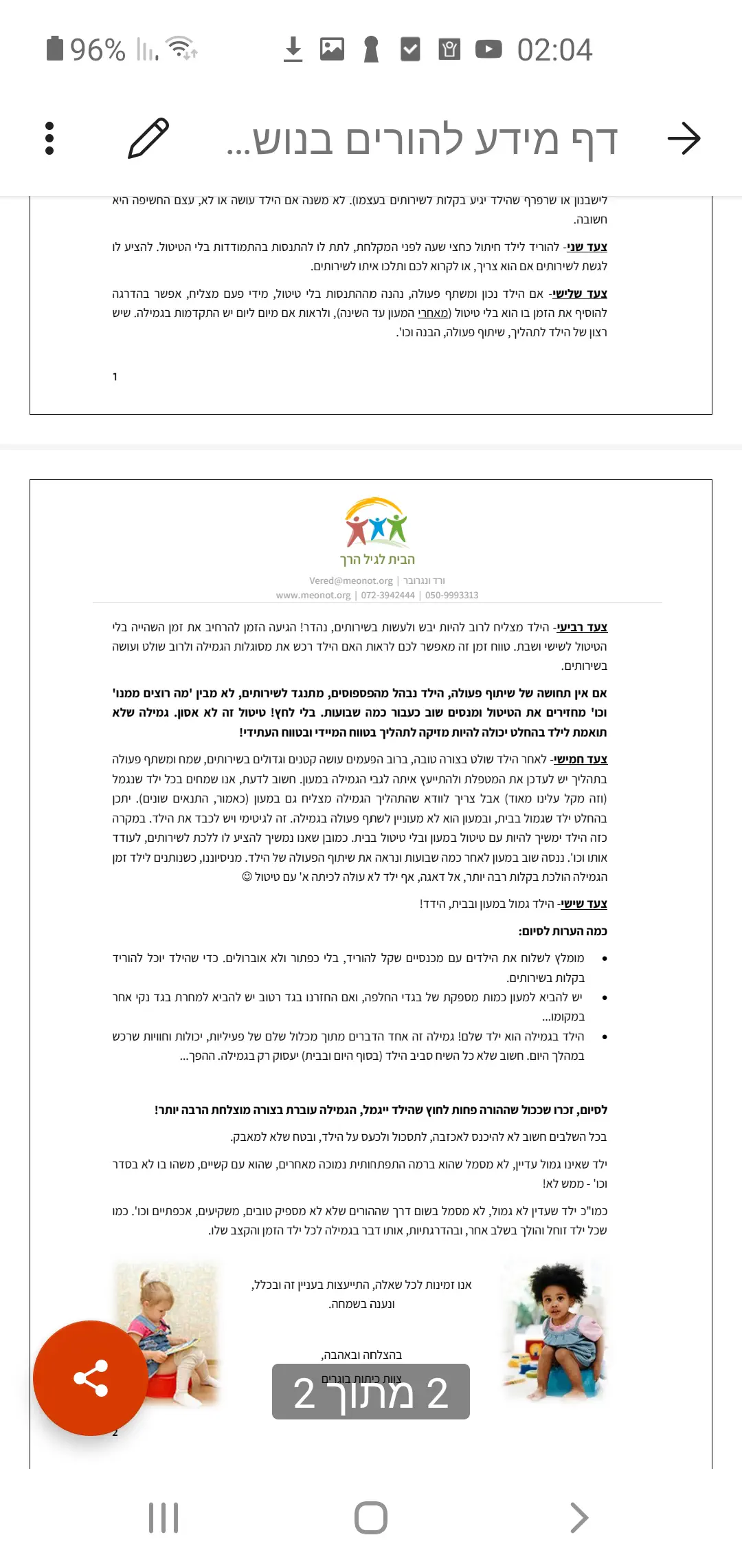 ואז הוא עשה פיפי פעם ראשונה, התרגשנו והכל, אבל שוב, איזה חודשיים-שלושה הוא לא הסכים לשבת שוב על הסיר,