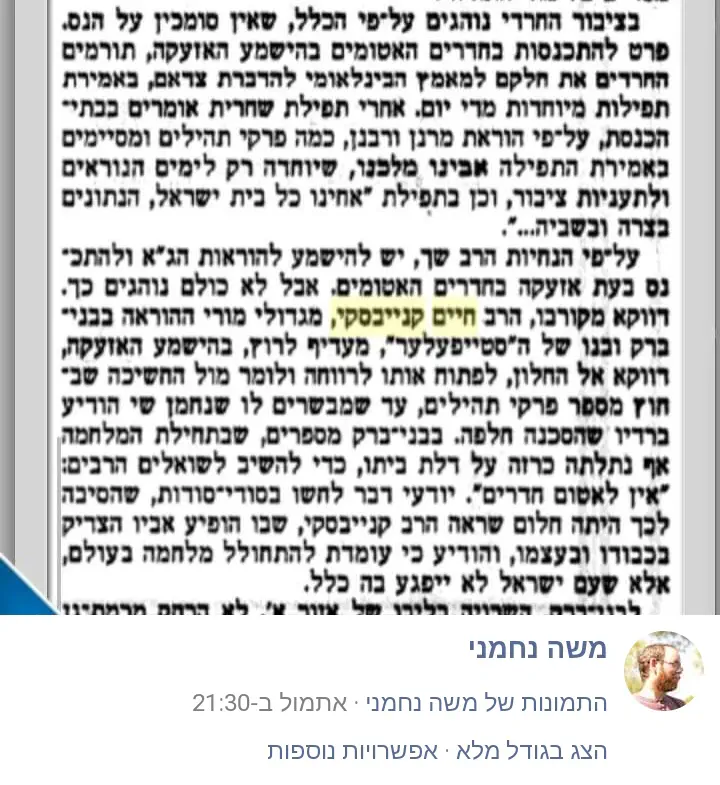 המאמר יצא נגד מה שכתבו רב אברום והרב דייכובסקי בזמנו