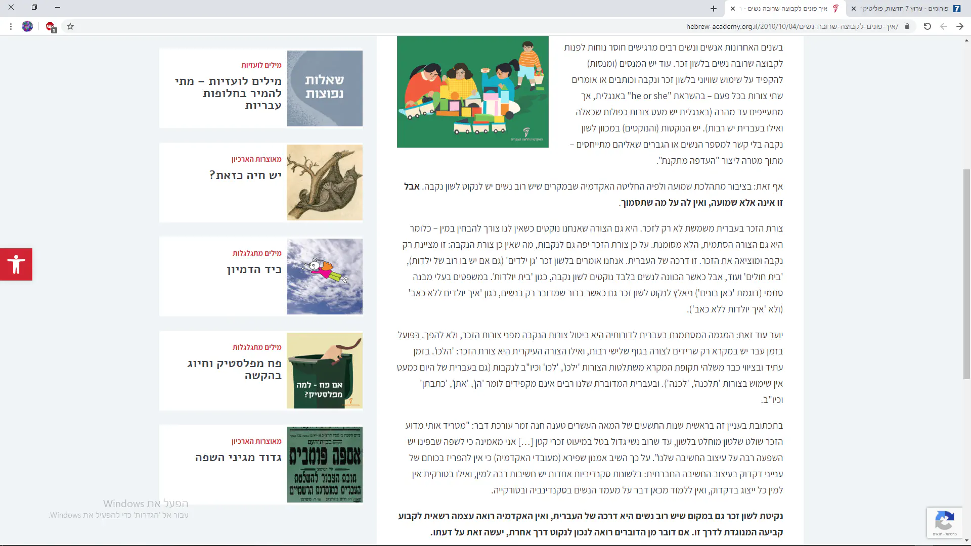 אני גם חושב ככה , זה נורא מעצבן שזה מאולץ כמו לדוג' שחייבים לומר מתמודדות ואז מתמודדים , בני גנץ כבר אמר המתמודדים אבל אז הוא חזר ואמר המתמודדות והמתמודדים וזה ממש עצבן אותי,. אם משהו ככה זורם לו תפאדל אין לי שום התנגדות אבל אם זה חייב להיו מאולץ זה ממש מעצבן.