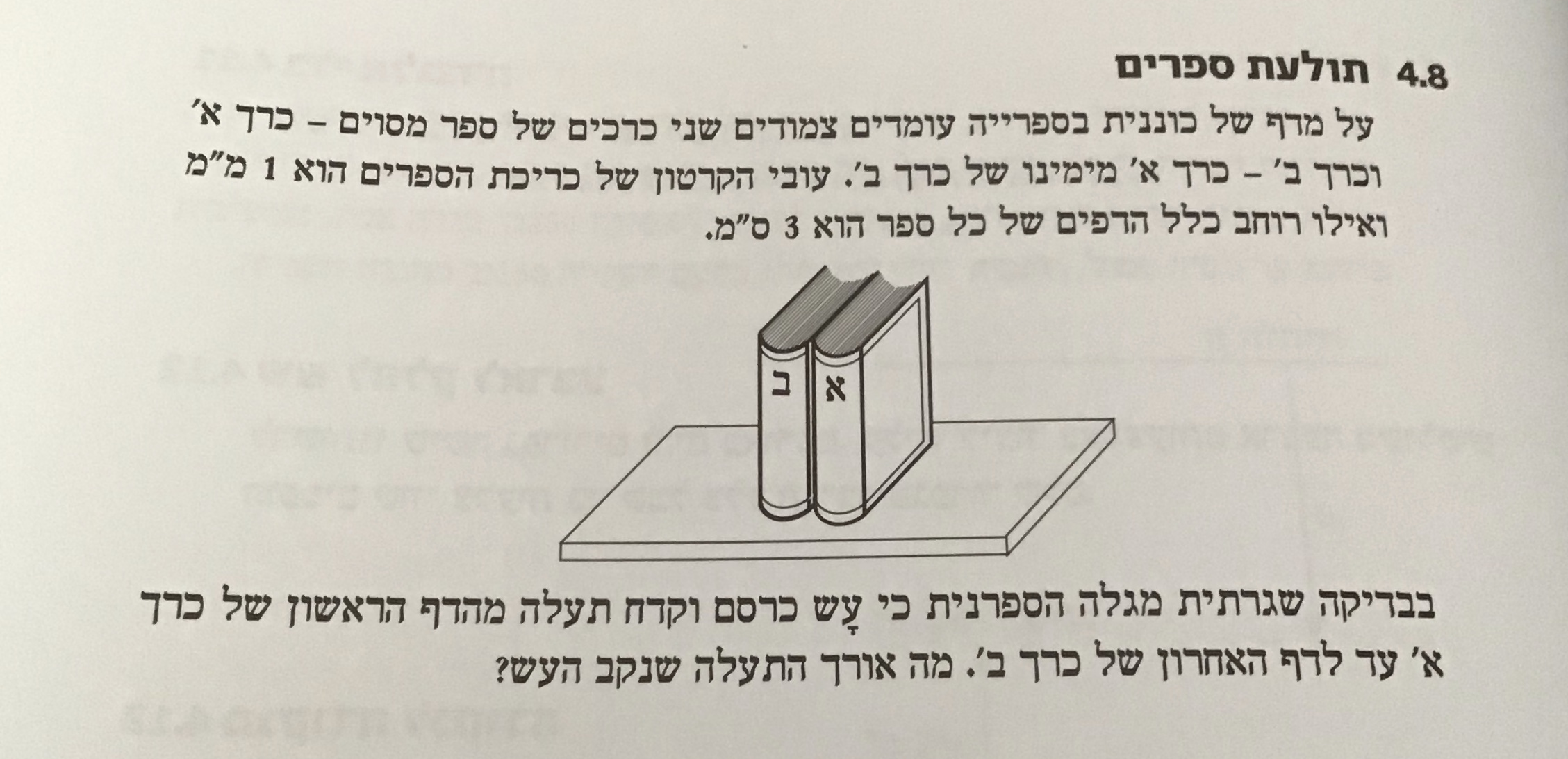 6.4 ס"מ - מהדף הראשון עד סוף הספר השני, אורך שני הספרים ביחד + רוחב הקרטון = 6 ס"מ ו-4 מ"מ