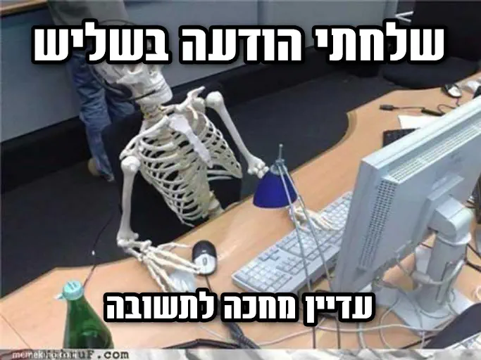 אני עדיין מחכה שתיצור איתי קשר כדי להודיע שזה לא רלוונטי 12 שנה אחרי החתונה.