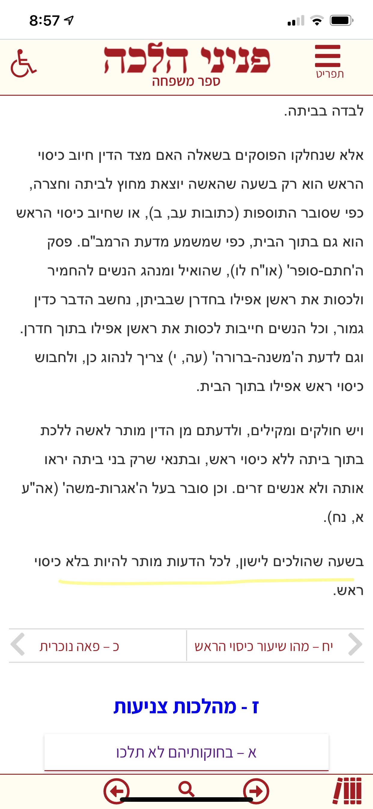 ואגב לגבי כיסוי ראש- כתוב שאם האישה לא מקפידה לשים כיסוי ראש תמיד שהיא בבית, אז היא גם לא חייבת לשים בזמן שאסורים. צריך שהאישה תקפיד לכסות את מה שהיא מקפידה תמיד..