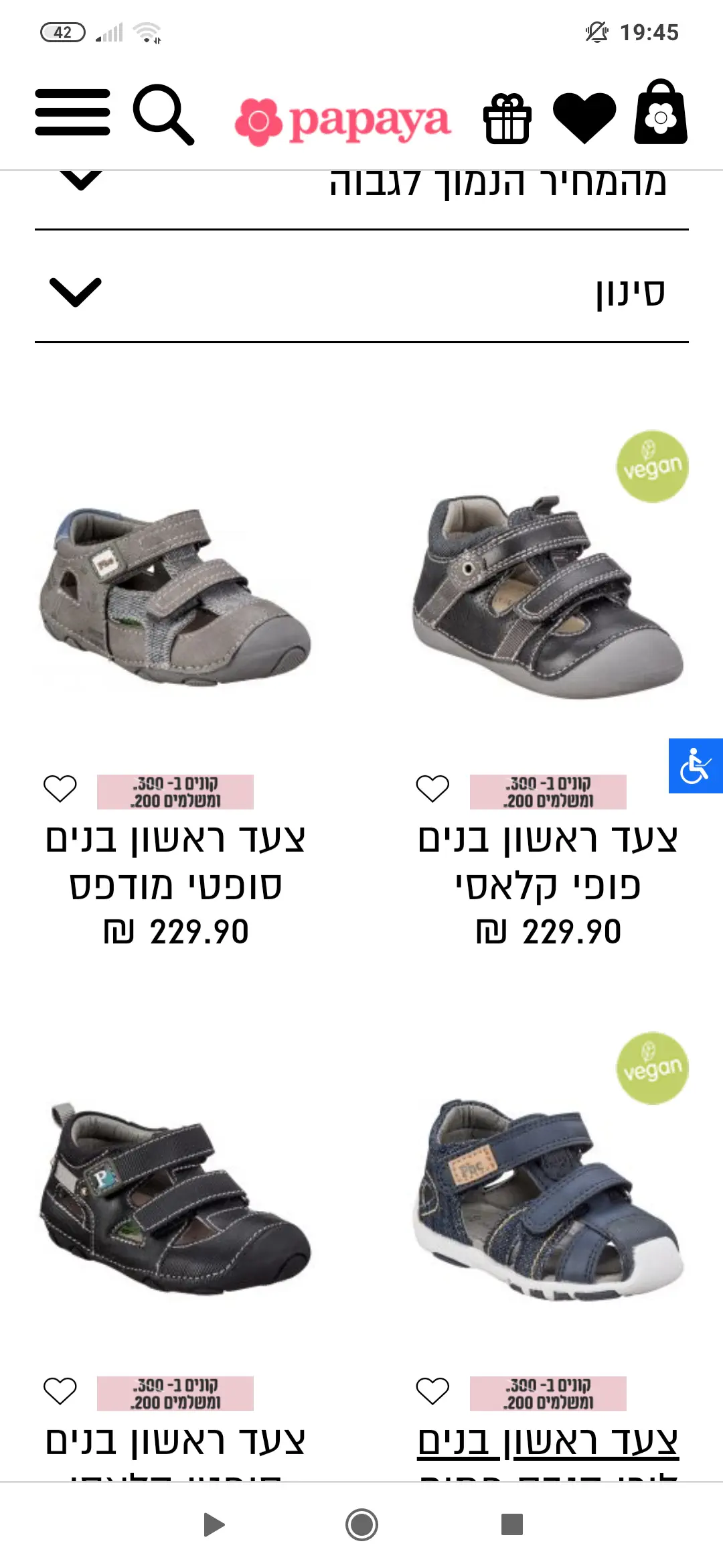 הילד שלי( 8 וחצי)רק עם נמרוד, מאלפנטן עד עכשיו. להוציא חצי שנה עם פפאיה(פחות אהבתי. )ונעלי שבת שאני קונה במבצעים מסתם חנויות כי בקושי נועל אותן.