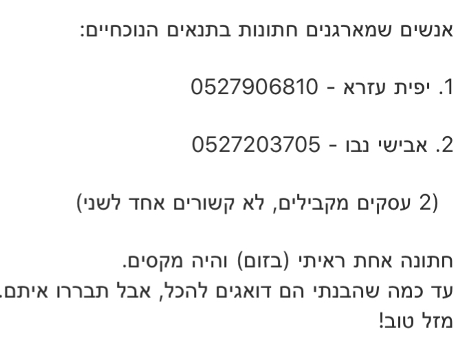 משיהי באזור חיפשה המלצה על חתונות בירושלים וזה מה ששלחו לה
