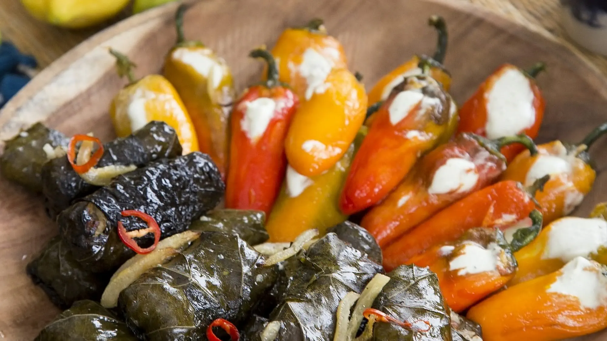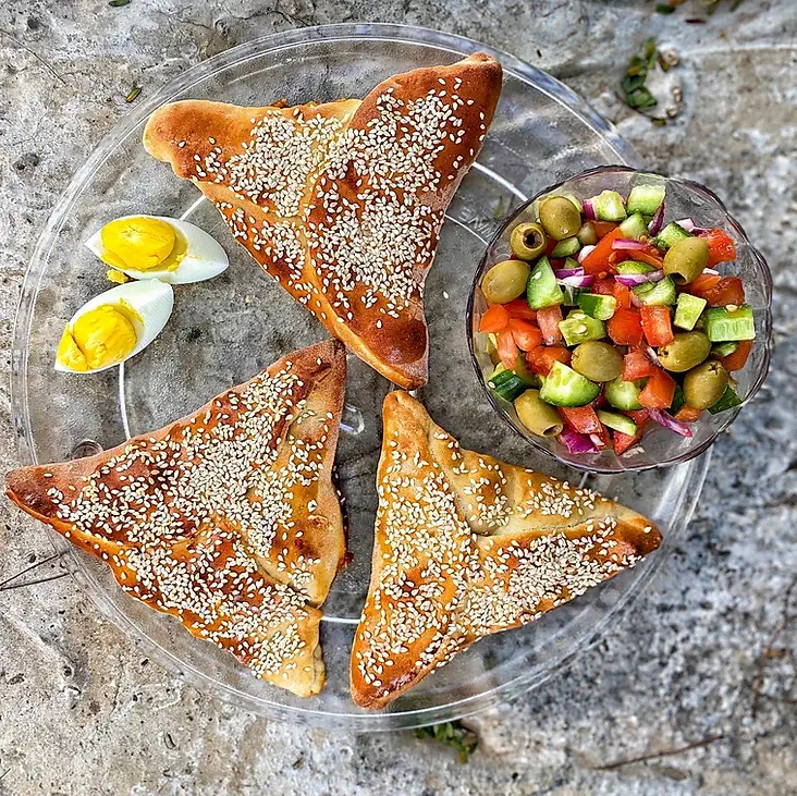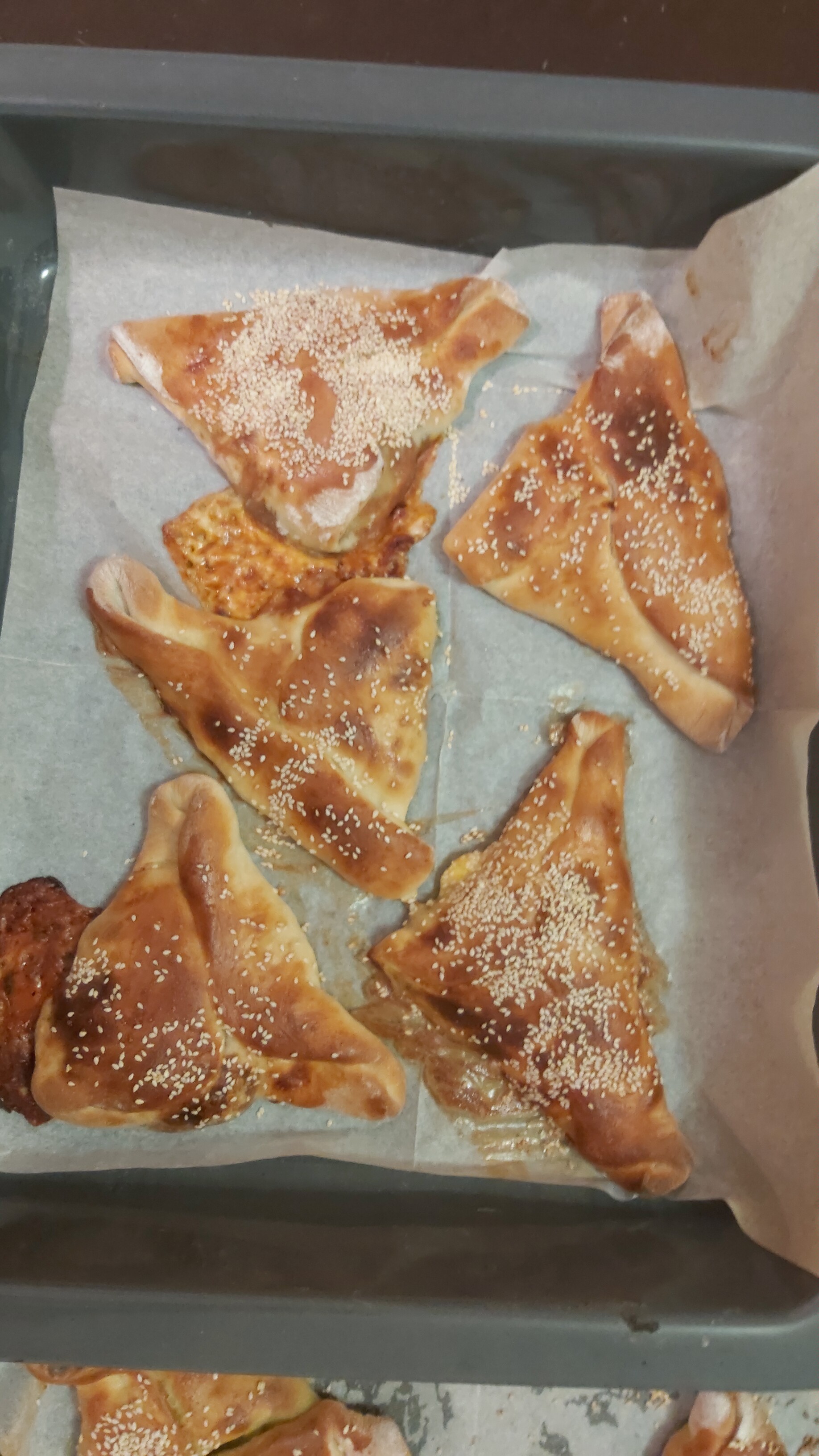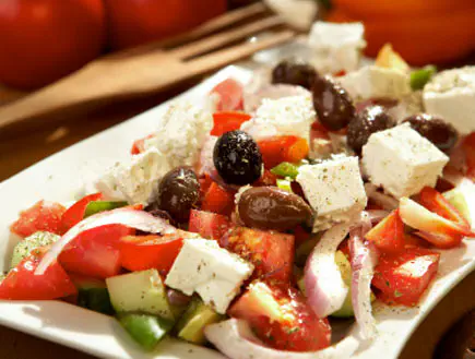 והנה הוא- חלה, סלט יווני, פלפלונים ממולאים גבינת עיזים, נתחי סלמון בנוסח יווני, פשטידת בטטה (כבר יש), סמבוסק גבינות, כדורי גבינה מלוחה, כדורי גבינה מתוקה, עוגת גבינה ובצק עוגיות