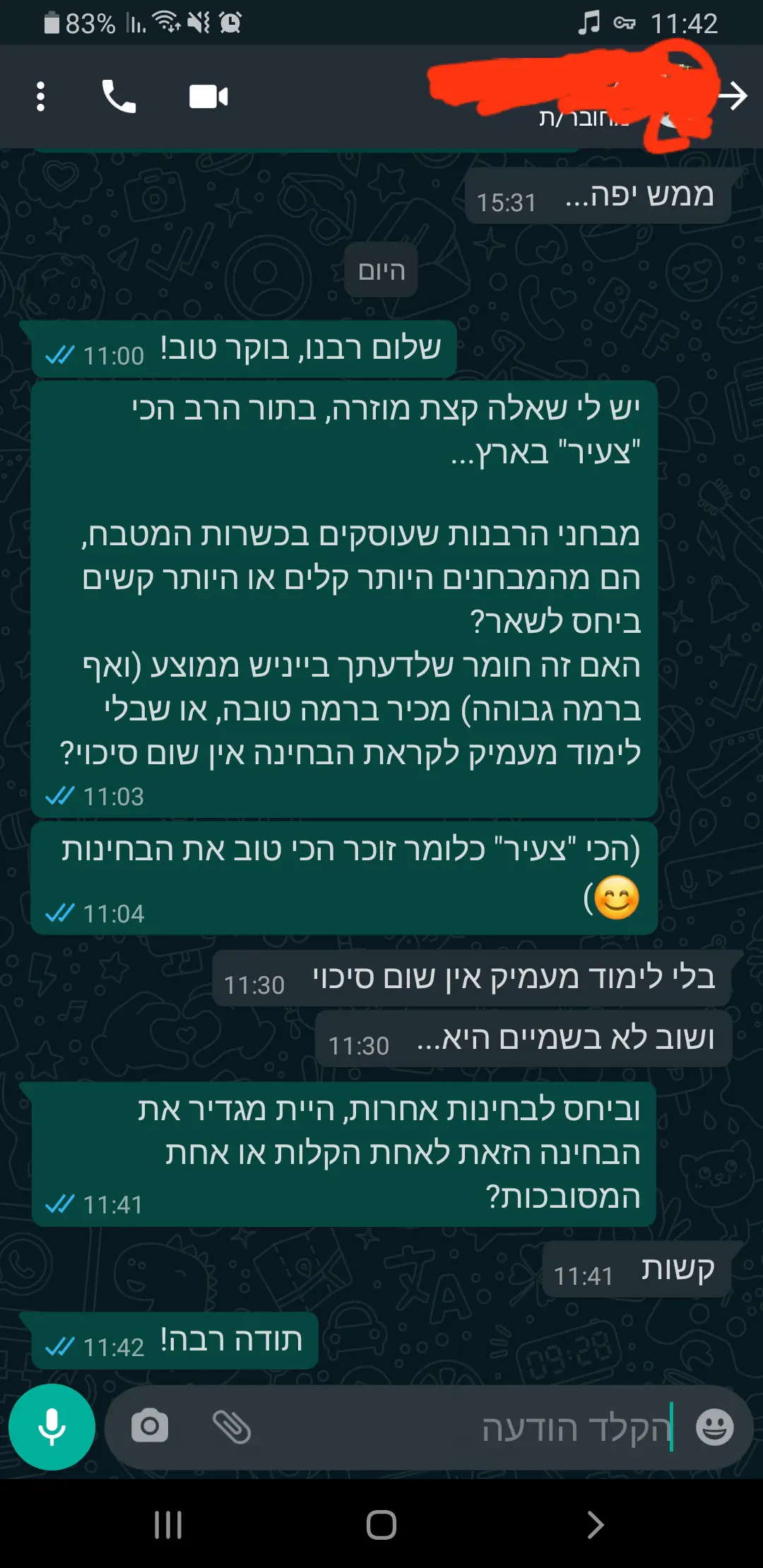 לי הרבה יותר חשוב הרוח התורנית של הבחור, הלימוד תורה שהוא בוחר ללמוד , ה "עשה לך רב" של הבחור שילך וישאל שאלות את רבותיו