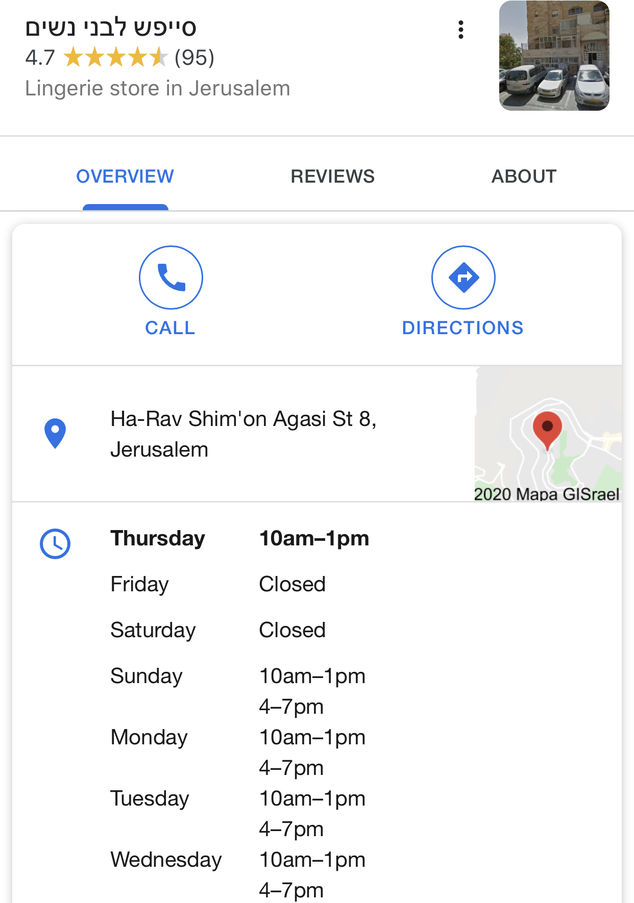 חנות הלבשה תחתונה מאוד פופולרית בשכונת הר נוף, ירושלים.קרן-הפוך