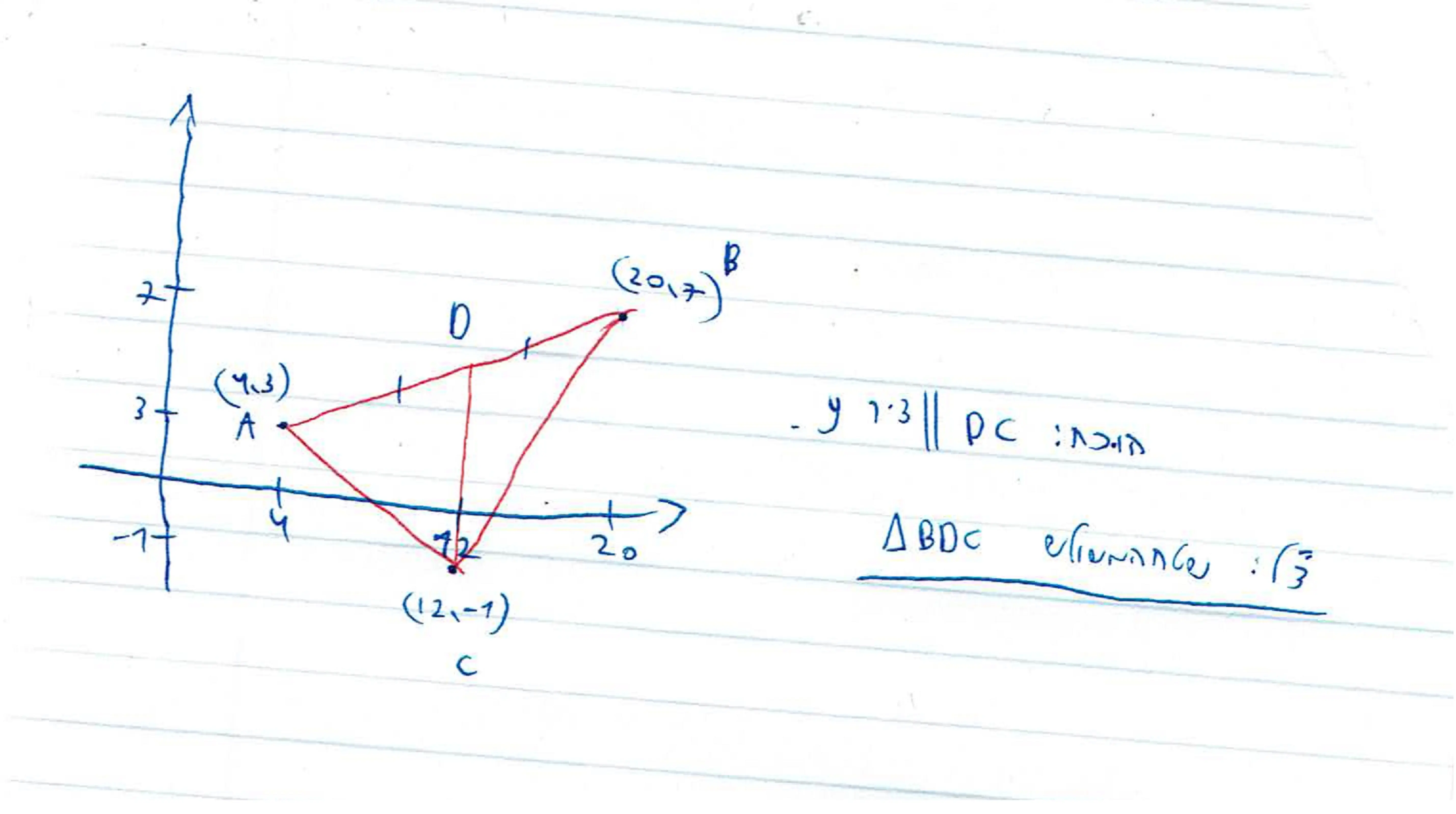 תחשבי את נק' D. זאת נק' אמצע (AD=DB) ואז תחשבי את אורך DC ותיראי שהוא שווה לאור AD ן- DB
