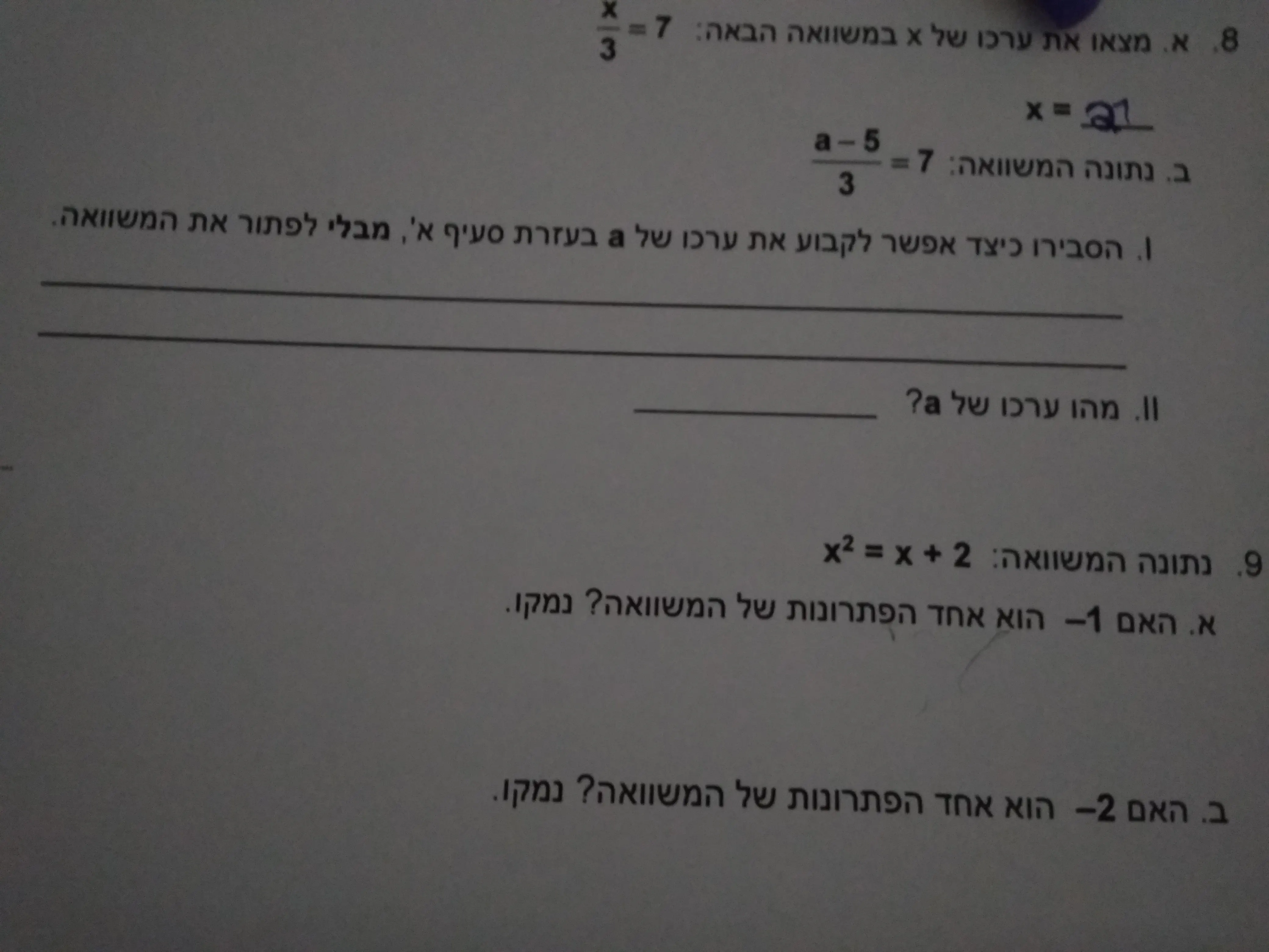 איך אני קובעת את ערכו של a בלי לפתור את המשוואה?הכל עוד אפשרי