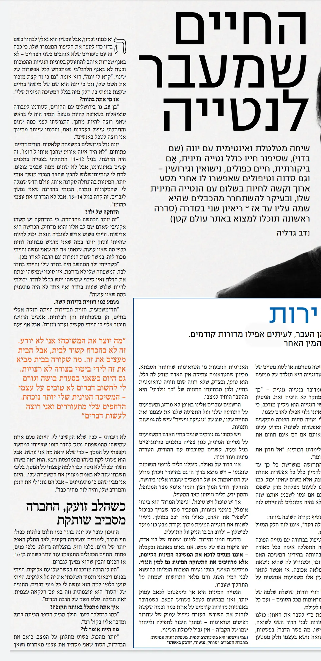 עולם קטן העלו ראיון עם ביסקסואל גם בגליון של פרשת קרח (אגב, למה הם חוששים לראיין הומואים? בין הפותרים נכונה תוגרל גומיה).