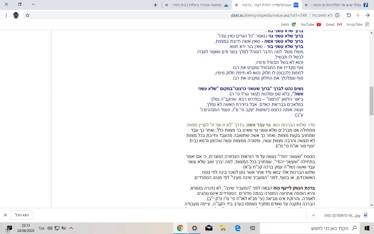 היא שאלה על ענין הברכה והסברתי מה המקורות אומרים. נסיתי פשוט לענות לשאלה שלה.