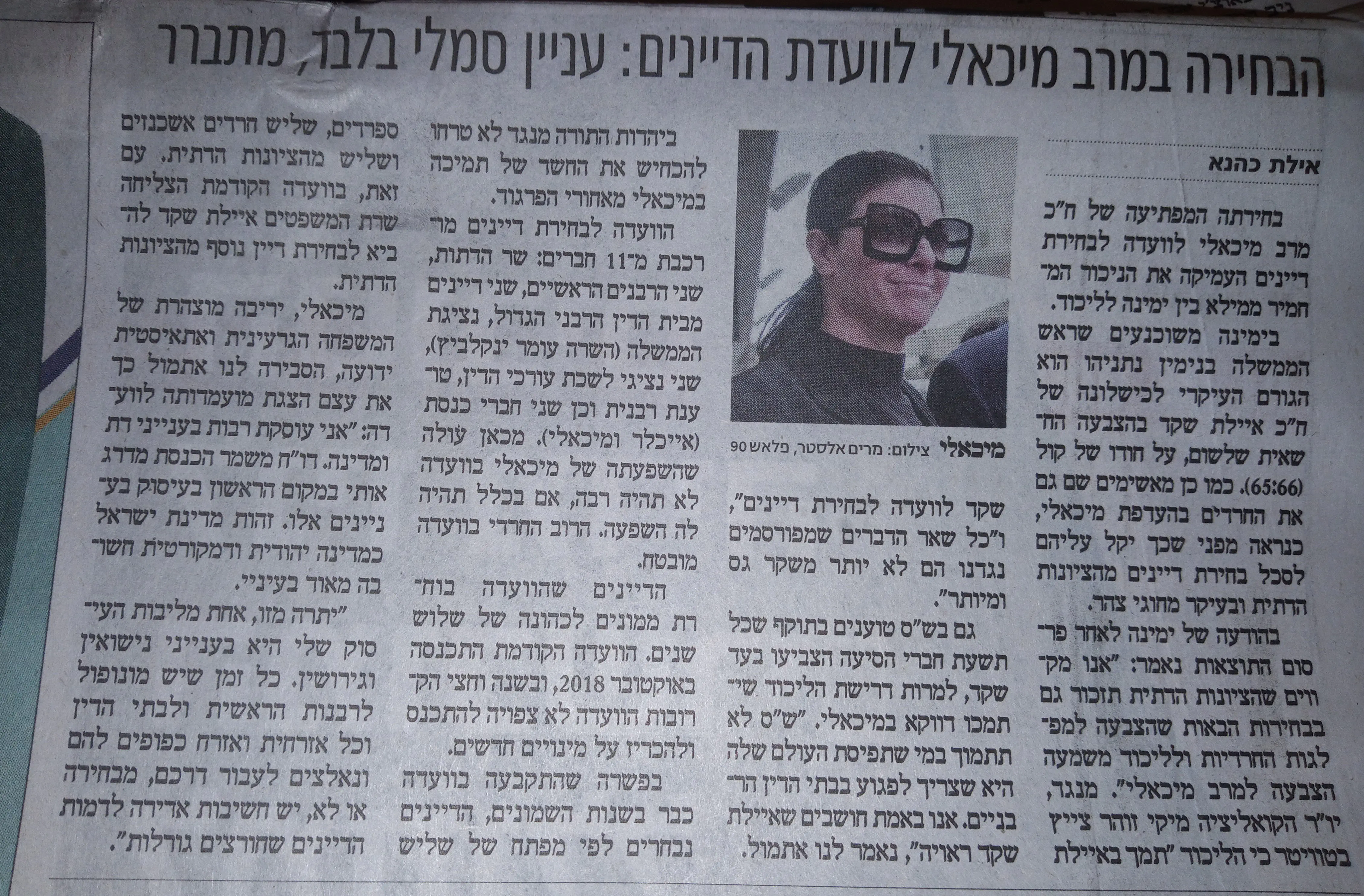 (אם כי אני שותף לזעזוע מכך שאנשים המציגים את עצמם כיר"ש, נתנו לאחת שמתנגדת לכל ערכי קדושת הבית היהודי לבחור דיינים)
