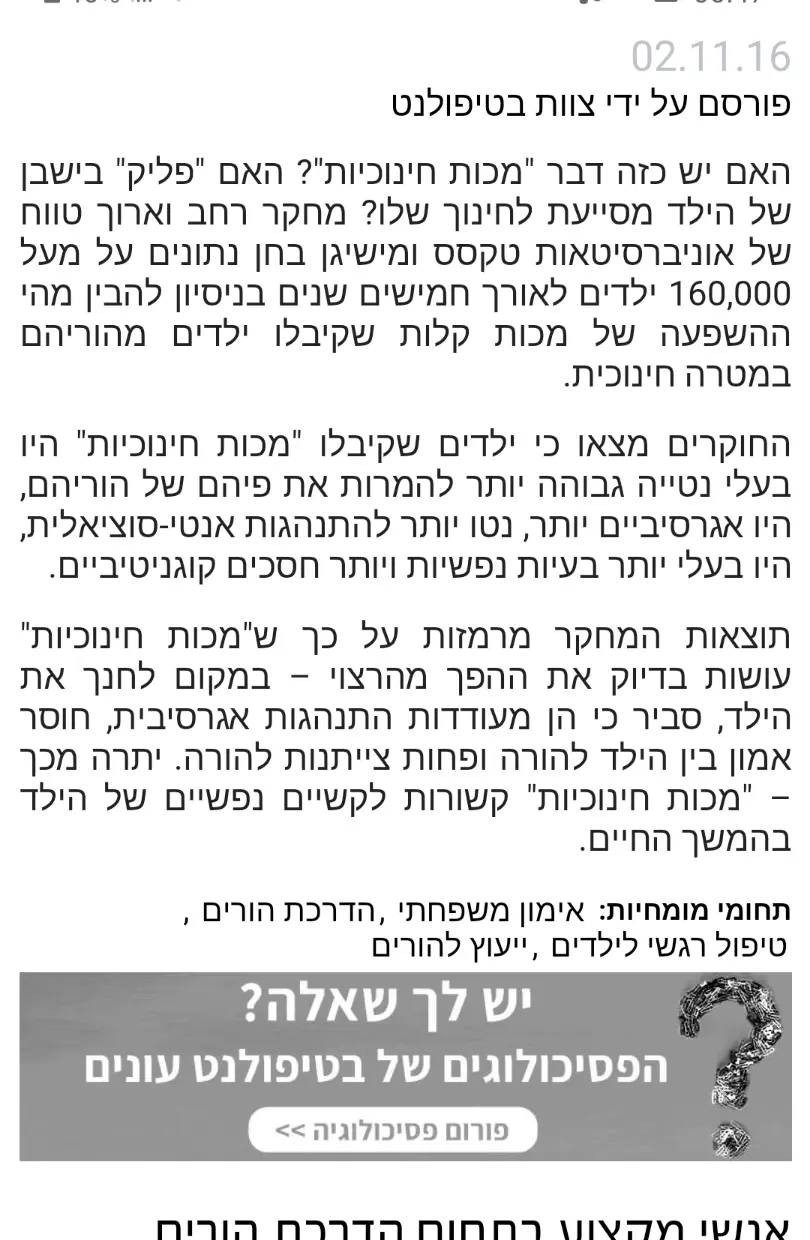 שמבינים מהי התועלת והחיסרון בהכאה ואת דרך החינוך שמתאימה לדור הנוכחי .