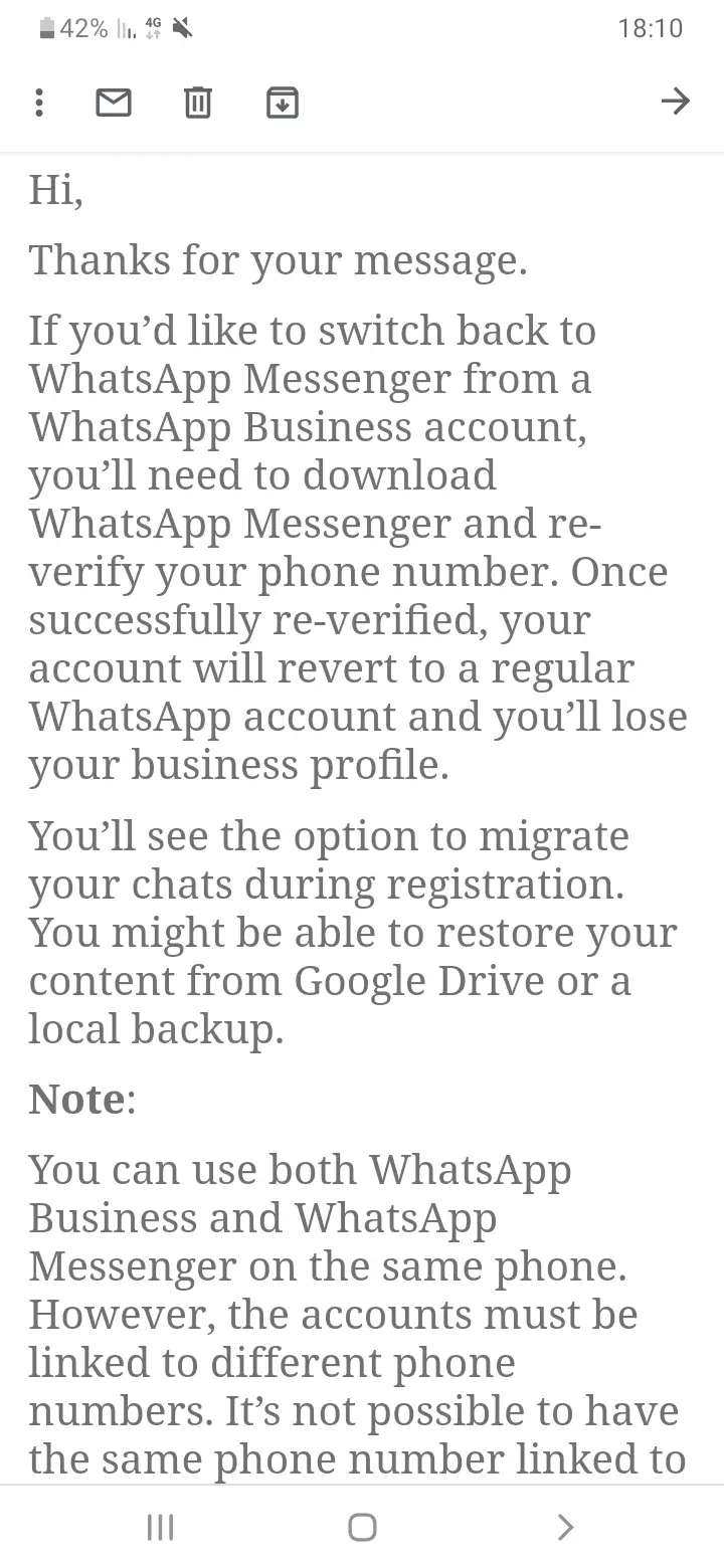 לא, גיבוי של ווצאפ ביזנס משוחזר רק בווצאפ ביזנסחופר