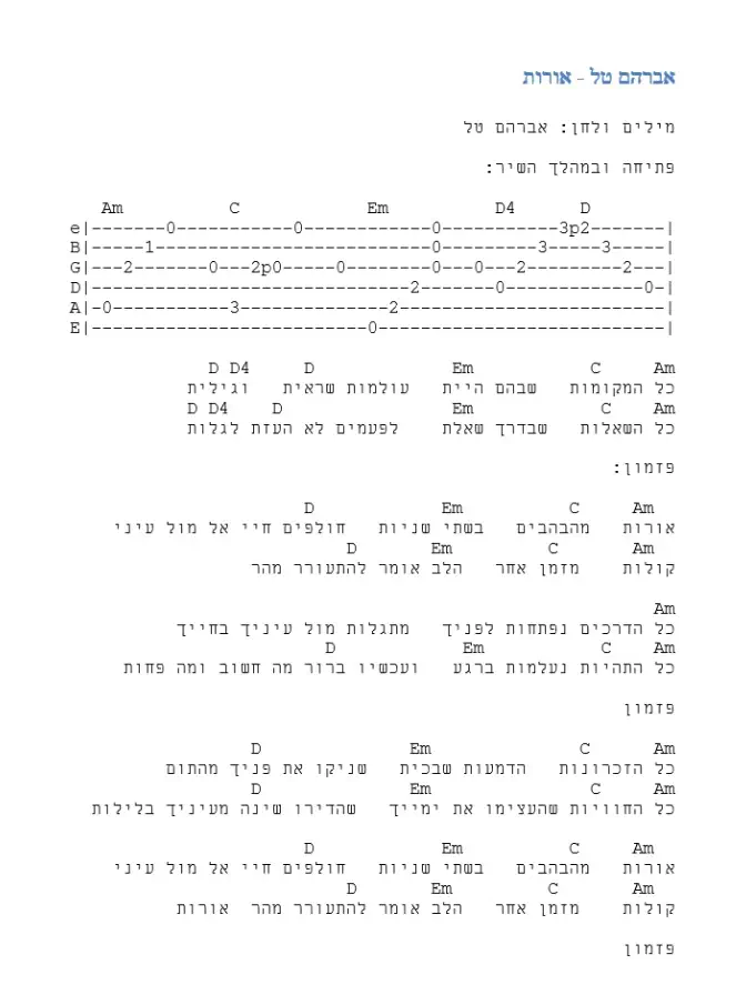 הנה השיר אורות/ אברהם טל