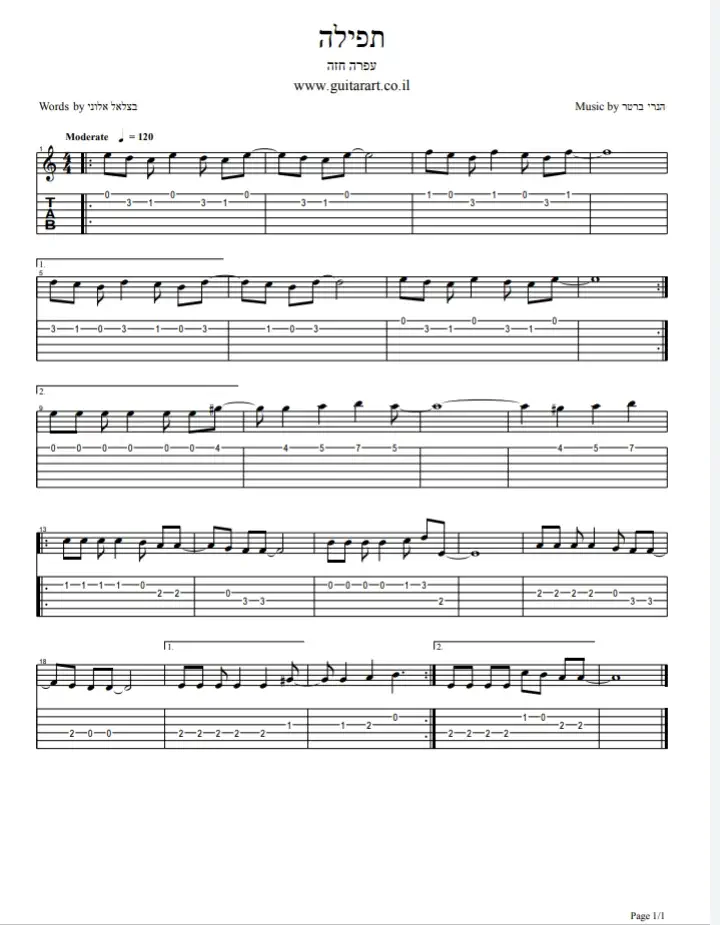 אין לי זמן לעשות את זה אבל פשוט לתרגם את התווים לתרשים של טאבים (אם מישהו רוצה ללכת על זה יש לי תווים ל: מי שענה, רחמנא דעני, בן אדם מה לך נרדם, שומר ישראל, אדון הסליחות ועוד כמה)