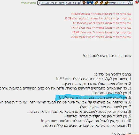 ב. לעבור על חוקי היסוד של הפורום