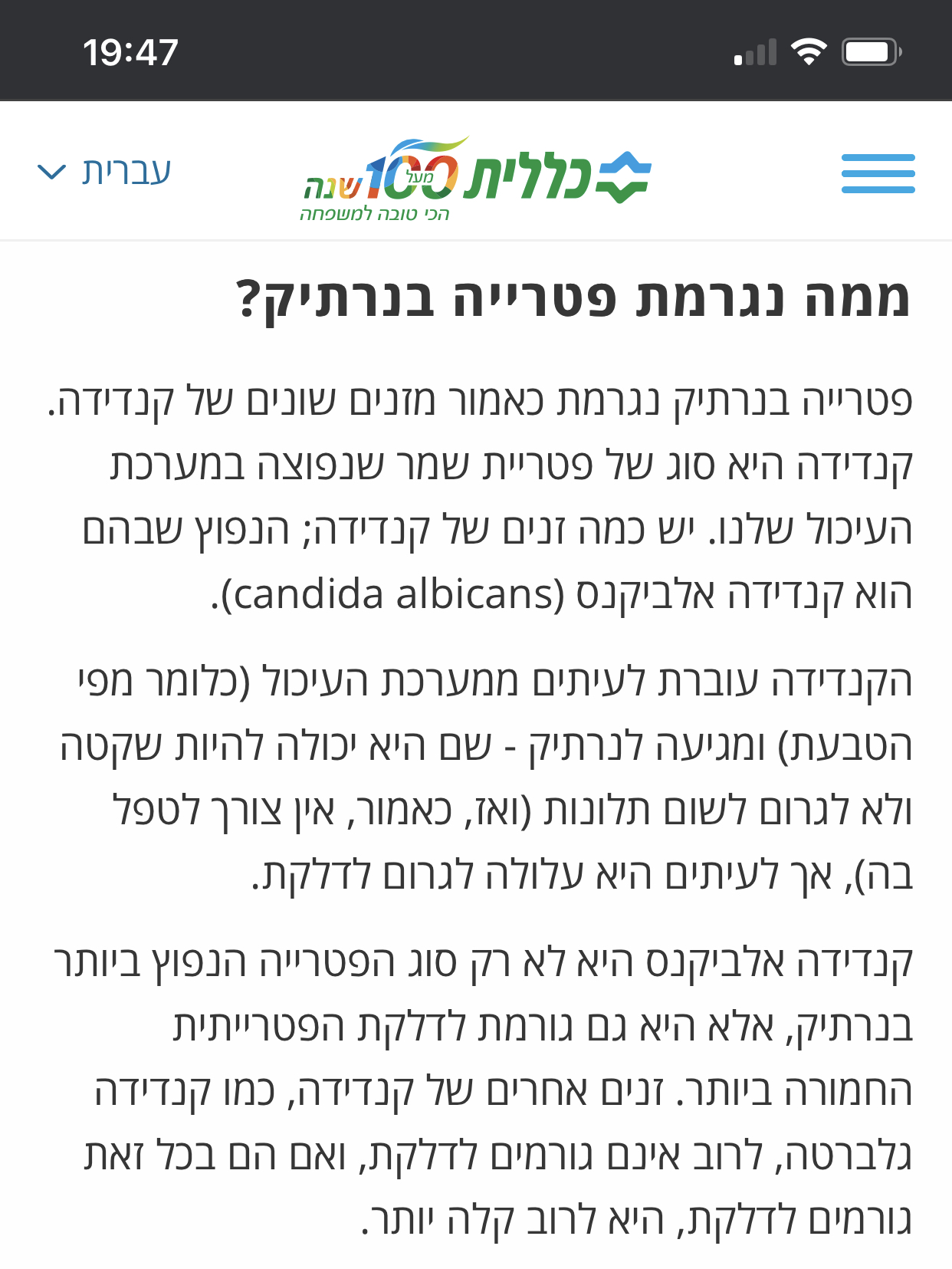 פטרייה בנרתיק (קנדידה): כל מה שאת צריכה לדעת | שירותי בריאות כללית