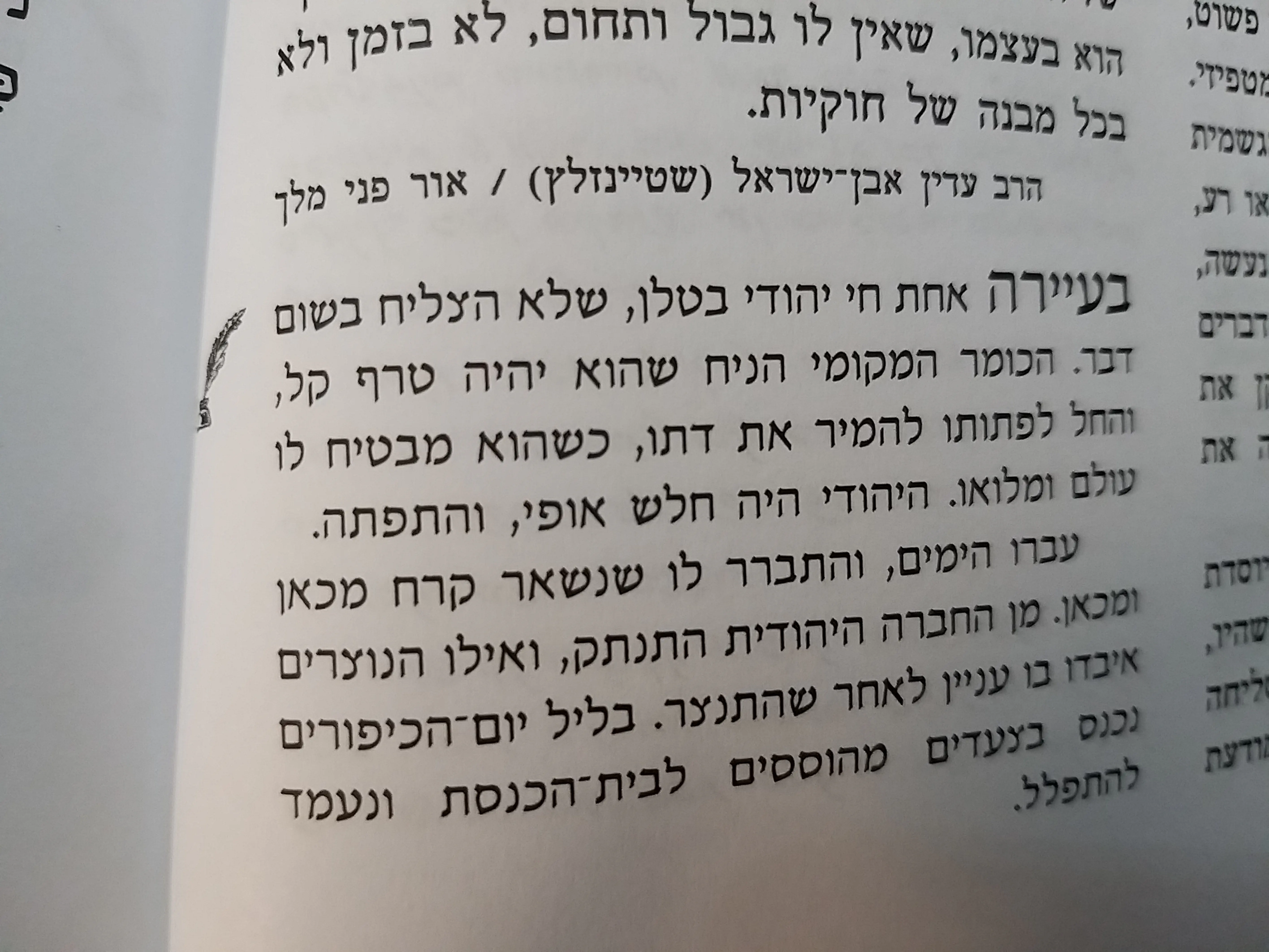 היהודי הזה, לעומת זאת, התפלל אל ה' ישירות מהלב. בלי מחזור, בלי קהל, בלי שליח ציבור. קו ישיר לריבונו של עולם.