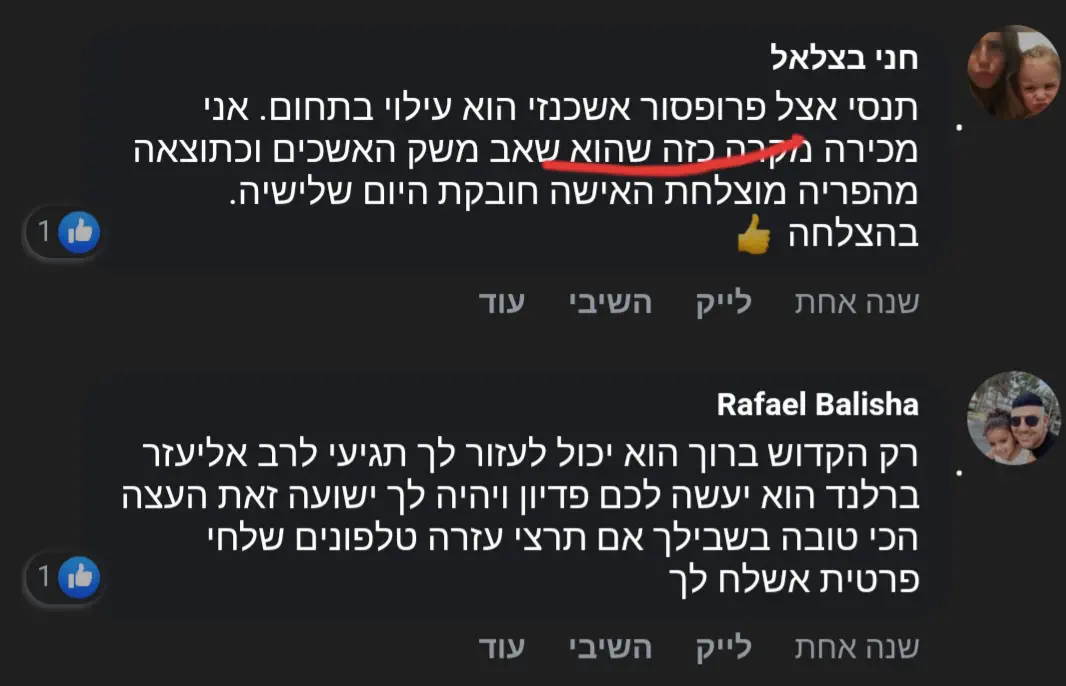 היום יש להם תאומים ועוד בת. שאלנו אותם איך? ענו: טבעי!!! תקופת פוריות שלא הייתה לפני כן!