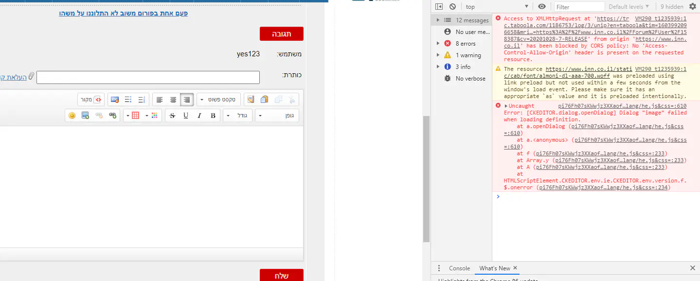 תוכל לצלם מסך של F12 > CONSOLE כשאתה מנסה להשתמש בזה?