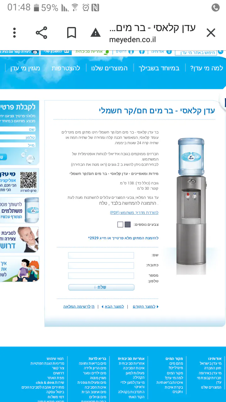 מי עדן, זה אחלה, המכשירים שלהם הזולים הם במראה די מיושן, יש להם שירות פצצה באמת אין דברים כאלה, לדוגמא, לפני האספקה החודשית נגמר לך הכדים, מרים טלפון, הם מביאים לך, יש בעיה עם המכשיר, שולחים באופן מיידי טכנאי ועוד.