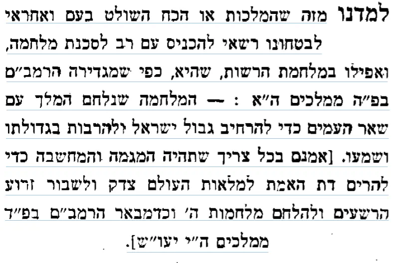 אמרת שזה מצווה ליחיד להלחם לבד עניתי שכתוב שם שהמלך עושה זאת, כתוב צבא עם שוטרים ,כתוב במשנב "כדינא דמלכותא"
