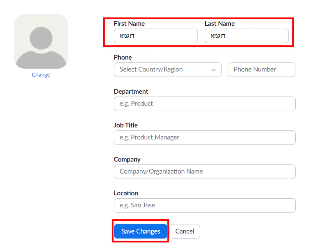 3. בוחרים שם חדש (First Name- שם פרטי, ו-Last Name- שם משפחה).