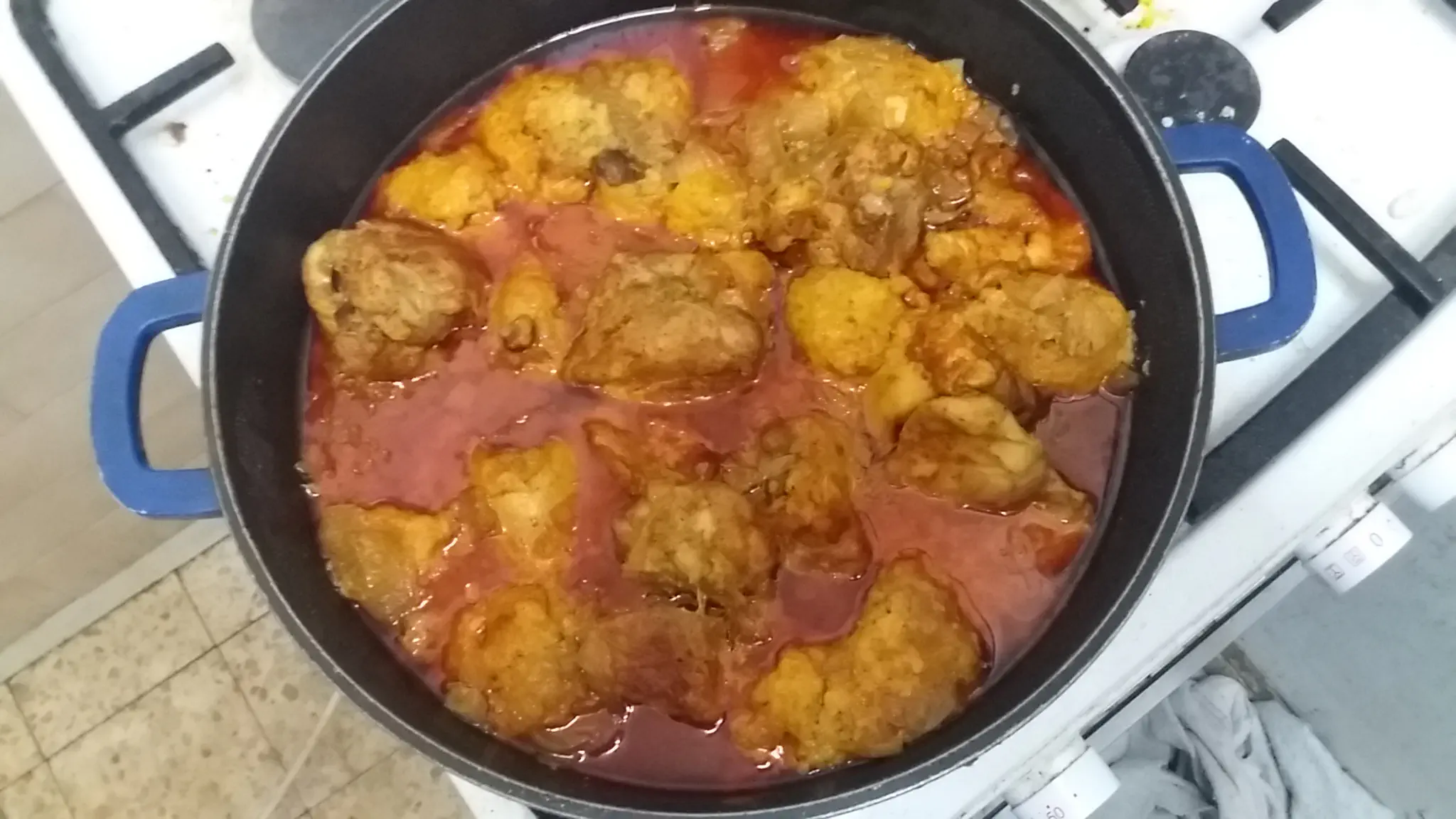 עוף עם בטטה ובצל ברוטב פיקנטי בתנור של חן במטבח.